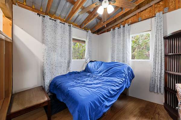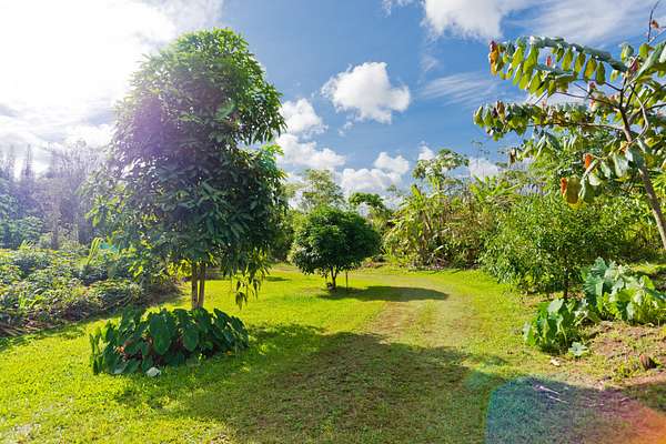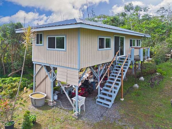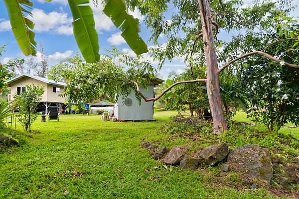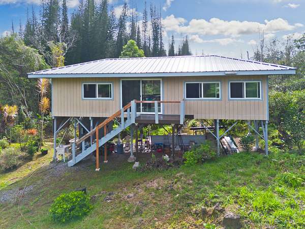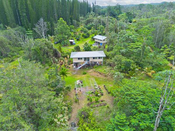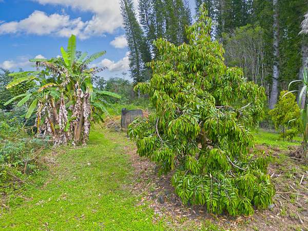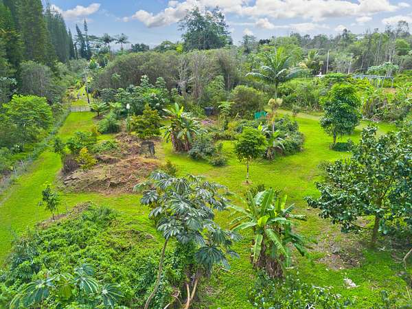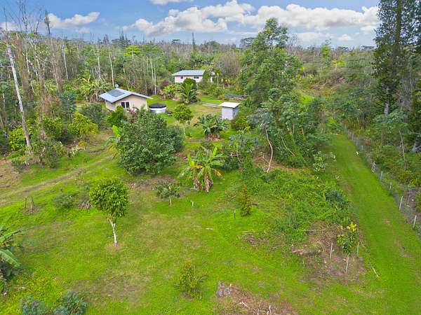 Welcome to a truly one-of-a-kind homestead retreat, where privacy, sustainability, and tropical abundance come together on five fully fenced and gated acres. Tucked away at the end of the road and backing up to approximately 1,500 acres of private land, this property offers a rare sense of seclusion and space to breathe. The land itself is a living orchard, home to over 100 exotic and producing fruit trees, including durian, mango, jackfruit, chempedak, sapote, avocado, citrus, maprang, jaboticaba, dwarf coconut, achachairu, and more-an absolute dream for growers, homesteaders, or anyone craving a deeper connection to the land. Two off-grid cabins provide flexible living options, guest accommodations, or creative workspace, and the property is equipped with a catchment system featuring filtration and a UV sanitizer, along with a washer and dryer (propane) for everyday convenience. Photovoltaic system includes a 48 volt, 10k watt system with Outback inverter, 8 panels, 4 batteries and generator. Thoughtfully set up and designed for self-sufficiency, this homestead can be sold turnkey, allowing you to step right into a lifestyle that's already established and thriving. Whether you envision a private retreat, a sustainable living compound, or an agricultural haven, this is a rare opportunity to own a slice of Hawaii that feels worlds away-yet ready to welcome you home. See attached property video and listing of trees. This is a cash only sale. No seller financing. Structures built without permits. There is no cesspool or septic.
