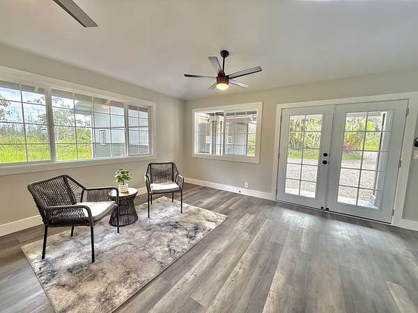 Welcome home to this beautiful estate located off of paved Moho Road 8 in Hawaiian Acres. Featuring 3 acres of land with a recently updated 3-bedroom 3-bathroom & extended carport for boats or parking, you will not want to miss this great opportunity! Lush vegetation helps secure peaceful privacy while allowing for cool country breezes to make their way through. Inside you will find an open concept kitchen, living room, and dining area. Perfect for hosting family gatherings or weekend entertainments. Each bedroom is thoughtfully positioned away from the gathering area to ensure quiet reservations on downtime. Two bedrooms are positioned behind the kitchen hallway while the primary suite is tucked in the far west of the home with its own lanai access, walk in closest, and en-suite bath. Located just off of paved Road 8, you're not far from convenience stores and restaurants. Up the road on Hwy 11 you'll find outdoor trails and learning at Volcano National Park or head down to Kea'au with local shopping & a fun public park, and about 15 miles to Hilo town. For more information about Hawaiian Acres, check out the community association website