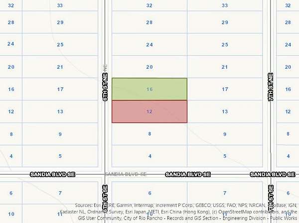From Southern and Rainbow SE take Rainbow north to 5th Avenue SE then east to 6th Street, then south to lots.Lot 3 Lat/Long: 35.258588, -106.724243Lot 4 Lat/Long: 35.258808, -106.724243