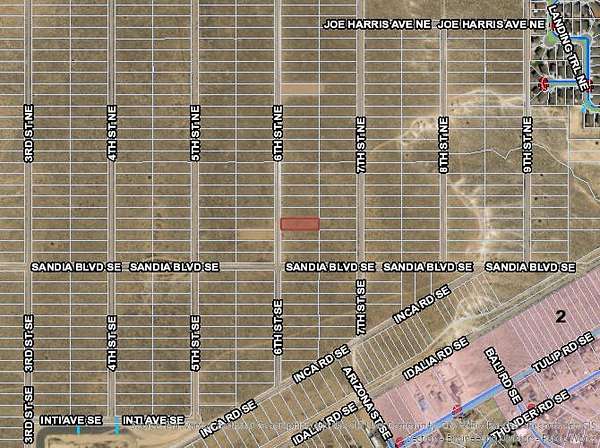 From Southern and Rainbow SE take Rainbow north to 5th Avenue SE then east to 6th Street, then south to lot. Lat/Long: 35.258806, -106.724242