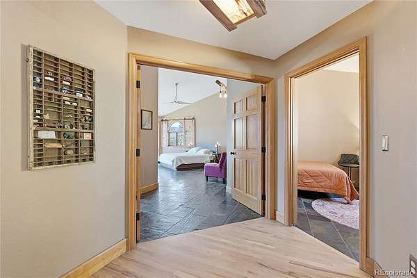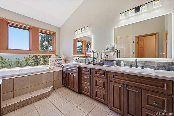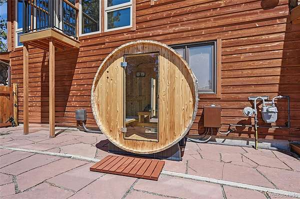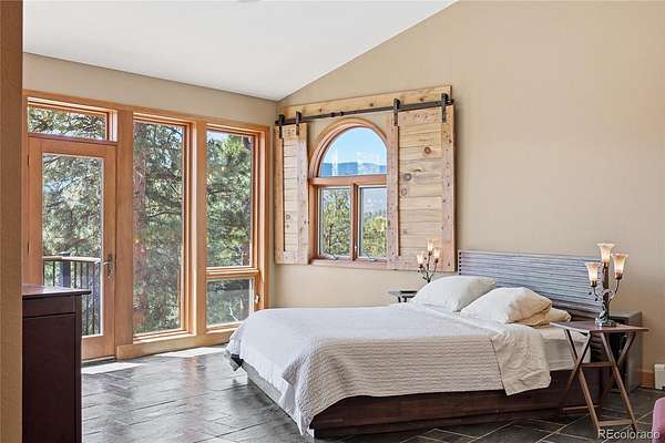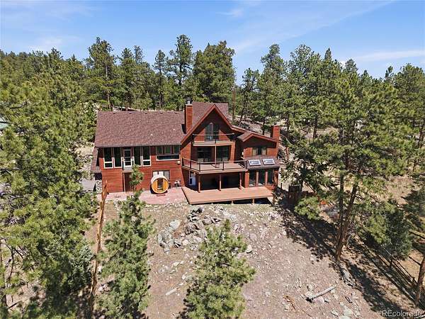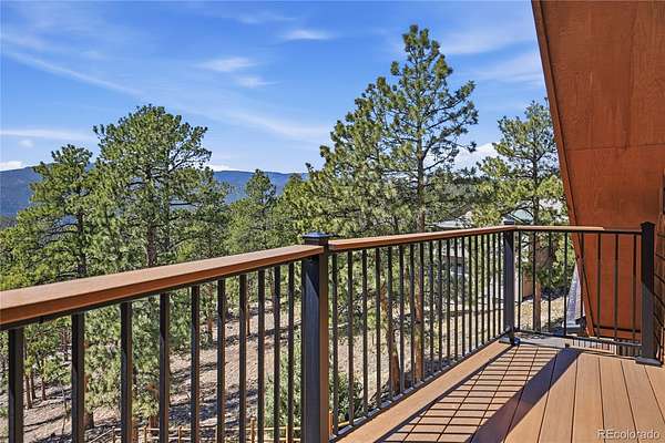 Sitting at nearly 9,000 feet in elevation, the views from 16 Auk Lane are truly impressive. On a clear day, you can see all the way to Windy Peak, 9 miles away, with sweeping views of the entire valley and no homes in sight thanks to the property's direct backing to Pike National Forest. Take in these endless vistas from the brand-new rear decks. Roll open the double barn doors to your massive main-level primary retreat, complete with a private balcony, wall of windows, walk-in closet, 5-piece en suite bathroom, and personal office — all tucked away from the rest of the home for added privacy. Many of the south-facing windows have been tinted to keep the home cooler in the summer while also protecting the wood floors and furnishings. A movie room with custom beetle kill shutters and a projector creates the perfect entertainment space. Upstairs, you'll find two bedrooms with large closets, including one with a secret closet hidden behind a bookcase, along with a shared 3/4 bath. The lower level features a spacious bedroom with an en suite bath, plus a bonus room with endless possibilities. A gravity-fed 2,300-gallon cistern serves as backup to the well, and a whole-house 24kw Generac generator with a separate propane tank can power the home for up to a month. The backyard is fenced and includes a chicken coop ready for spring chicks. The third bay of the three-car garage has been enclosed for additional storage and can accommodate an ATV or small vehicle. The home also features a brand-new roof installed in 2022 with a transferable warranty through 2052. The Burland HOA is voluntary, with an annual fee of just $25, and helps maintain a pond and other community areas. Septic size unknown.