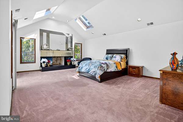 Elegance and comfort define this custom-finished contemporary colonial, clad in striking White Belgian Brick from top to bottom. Privately situated on a picturesque 1.92-acre fenced lot, the property is secured by an estate-quality Jerith fence and stately entrance gates. Bluestone front steps enhance its curb appeal, while the expansive backyard offers a park-like retreat with mature trees, open lawn, and a Trex patio deck leading to a charming gazebo-perfect for gatherings and outdoor entertaining. Graceful statues warmly welcome guests, setting the tone for the grandeur within. A sculptural curved wooden staircase anchors the foyer with artful sophistication, complemented by a stunning European chandelier, marble, and granite floors. Designed for elegant living, the home features a distinguished library, a kitchen with a large center island and generous pantry, a formal dining room, and an expansive living room with vaulted ceiling, skylight, and a floor-to-ceiling ceramic-tile fireplace. The family room with a second fireplace adjoins an exquisite sunroom illuminated by six skylights, offering year-round light and warmth. Upstairs, hardwood hallways lead to four spacious bedrooms, each with custom closets and private balconies-perfect for quiet mornings or starlit evenings. The main suite impresses with oversized skylights, ideal for stargazing, a fireplace for cool evenings and a spacious bath room featuring a soaking tub and separate shower. With twelve skylights and three working fireplaces throughout, the home radiates natural light and welcoming warmth. Includes 'Choice Home Warranty Service'. Additional living space includes a semi-finished multi-room basement, ideal for a home gym, office, or media room. Located in the sought-after community of Rosedale Acres, residents enjoy exclusive access to scenic walking trails winding through meadows and fields. Just minutes from downtown Princeton and conveniently positioned midway between New York City and Philadelphia, this residence offers the perfect blend of luxury, comfort, and prestige.