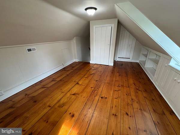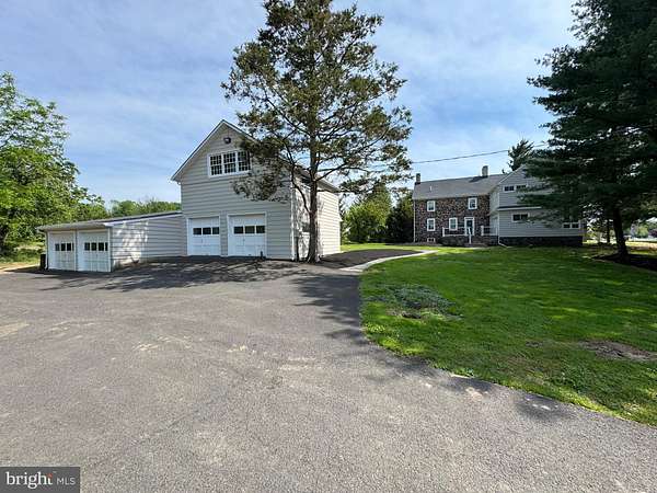 Classic Bucks County Stone Farmhouse loaded with charm with huge detached 2 car garage plus a large work area and loft above. New kitchen and bathrooms, new windows; new central air A/C system, new gas heating system, new septic system. Large fenced grounds (area within the fencing - approx. 1 acre - is what is included in the rental - the entire tax parcel is 6.5acres); dining room features walk-in hearth area; large bedrooms and 5th bedroom on 3rd level with huge storage area. The detached garage comes with 2 spaces included with the unit and a large area above the garage with vaulted ceilings. The 2 garage spaces on the left are reserved for owners storage.