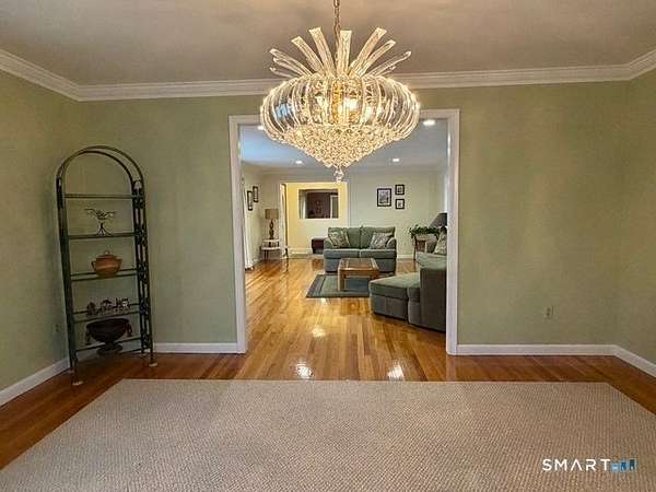 Beautiful ranch on quiet cul-de-sac street. Great layout with large Family Room, Living Room and formal Dining Room. Gorgeous cook's kitchen with hardwood cabinets, granite counters and stainless steel stove and dishwasher. The 3 season enclosed porch provides additional living space, as well as a sun-filled deck right off the Family Room. Large Primary Bedroom with Full Bathroom and huge walk-in-closet. 2 additional Bedrooms that are large in size with ample closets. And, laundry is located on the main level. Set on a level, private lot with attached 2 car garage. Oil heat, Central Air and tons of storage in the basement. 15 minutes to downtown New Haven, and 14 minutes to a Metro North train station. Shopping is 9 minutes away, and if you enjoy hiking or running trails, the entrance to the town trails are at the end of the cul-de-sac, steps from the driveway! A fabulous place to live - very private yet minutes to everything.