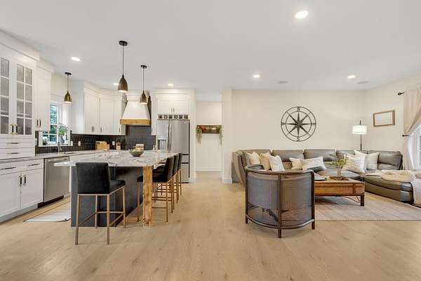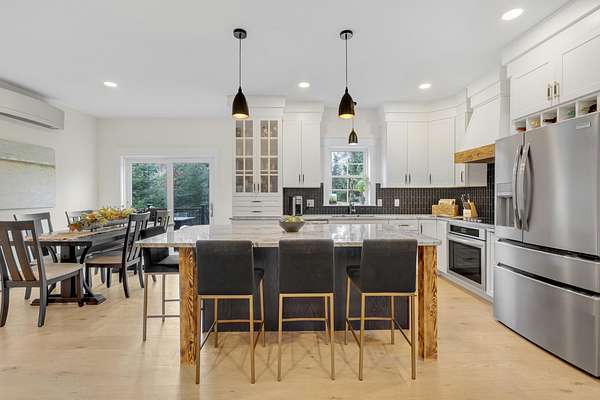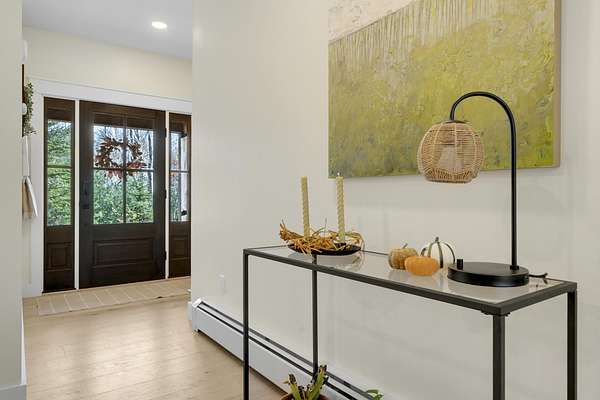 You'll love this fabulous contemporary colonial that blends clean design with warm rustic farmhouse touches. Sunlight pours through expansive windows, creating a bright and welcoming atmosphere perfect for today's lifestyle. Step inside to an open and airy first floor designed for effortless entertaining. The spacious living room centers around a cozy electric fireplace, ideal for relaxing evenings. The dining area flows seamlessly into a beautifully appointed kitchen featuring premium finishes, generous counter space, top-tier appliances, and a large walk-in pantry. A convenient mudroom and half bath offer everyday practicality. Upstairs, the generous primary suite provides a true private retreat, complete with a comfortable sitting area, a luxurious en-suite bathroom with a custom tiled walk-in shower and double vanity, and an oversized walk-in closet. Two additional bedrooms are thoughtfully designed; one includes a private office nook perfect for remote work or study. They share a full bath, and the dedicated laundry room adds ease to daily living. Outside, the charm continues with a large front porch accented by natural hemlock trimaEUR"an inviting spot to enjoy morning coffee or admire Maine's changing seasons. The expansive 3-acre setting enhances the outdoor experience, featuring a spacious deck, patio, and dedicated fire pit area. Outdoor enthusiasts will appreciate direct access to neighborhood walking trails, perfect for peaceful strolls, dog walks, or connecting to snowmobile trails that lead through Windham and beyond. Conveniently located just minutes from shopping, dining, Sebago Lake recreation, and commuter routes to Portland, this home offers the perfect balance of serene suburban living and easy access to everything Maine has to offer. Don't miss your chance to own this exceptional property aEUR" schedule your showing today!