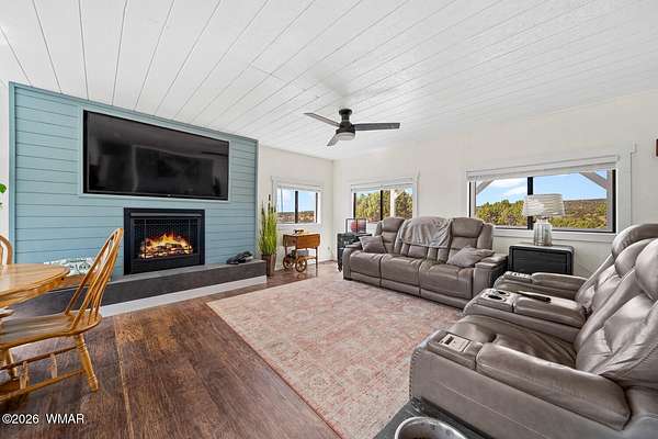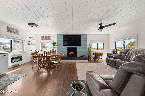 Experience true independence and the freedom of off-grid living with this beautifully remodeled home set in a peaceful, scenic setting. Powered by an impressive 14kW solar system for the home, plus an additional 5kW system for the detached garage, you can enjoy the comfort of modern living with virtually no power bills--now or ever. This nearly 1,000 square foot, 2-bedroom, 1-bath home was thoughtfully remodeled just a few years ago, and it shows. From the moment you walk in, you can feel the pride of ownership and care that has gone into every detail. Inside, you'll find a warm and inviting space, complete with a cozy gas fireplace--perfect for relaxing on cool evenings. Step outside to the front porch and take in the breathtaking views that stretch for miles.