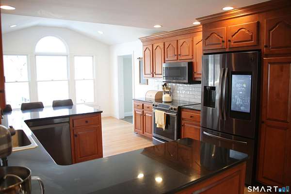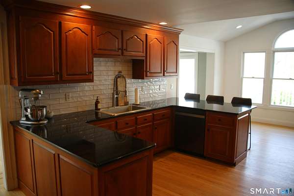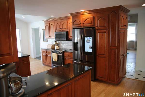 Oversized colonial with a unique layout, gourmet kitchen, and potential in-law setup with over 5,000 sq ft of living space. Privately set at the end of a cul-de-sac on 1.63 acres with an in-ground pool, patio, deck, koi pond, and level yard-great for outdoor living and entertaining. Features 4 bedrooms, 4 full baths, finished lower level, and detached 2-car garage. Main level includes living room with fireplace and custom woodwork, additional sitting room with fireplace, spacious dining area, kitchen with granite counters, hardwood floors, full bath, and laundry. Large family room with bar, sink, dishwasher, and fridge. Upper level includes primary suite, 2 bedrooms, plus separate-entry bedroom with full bath-suited for in-law, office, or guest use. Newer roof and furnace. A must-see in Woodbridge!