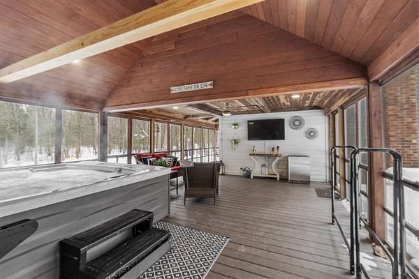 Looking for a spacious and private retreat in the desirable town of Exeter? There is so much more than meets the eye with this property of nearly four expansive acres of picturesque land. This home offers the perfect blend of comfort, space, and quiet natural surroundings, all within easy reach to area amenities. The main living area features a cozy wood-burning stove - perfect for crisp New England evenings - creating a welcome focal point for gatherings or quiet evenings alone. Downstairs the finished basement provides valuable additional living space to suit your lifestyle, ideal for a family room, home office, gym, or guest bedroom area. One of the home's standout features is the oversized attached porch, thoughtfully designed for relaxation and entertaining. Complete with a six-person hot tub and direct access to an outdoor entertaining area, this space will allow you to enjoy the peaceful setting all year round. Set directly across from acres of protected conservation land, the property offers lasting privacy and serene unspoiled views. For those looking to expand, the property also includes completed architectural drawings for a two-car garage - giving you ready opportunity to add value and functionality with ease. A rare opportunity of privacy and thoughtful amenities just minutes from Exeter's charming downtown area - this is New Hampshire living at its finest! Open House Saturday 2/28 11am - 1pm and Sunday 3/1 10am - 12pm.