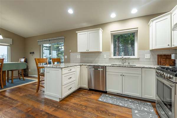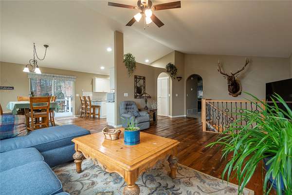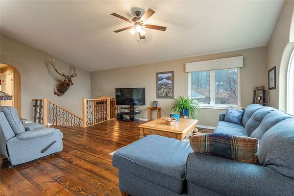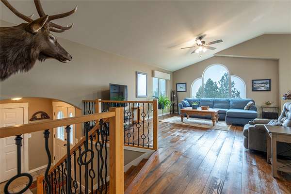 Meticulously maintained 4-bedroom, 3-bathroom Montana home on 5+ acres offers the perfect escape with natural rock outcroppings, mature landscaping, and stunning views of the Sleeping Giant. Ever wanted to feel like you're in the woods yet only about 15 minutes from town and the airport? This property delivers that ideal Montana lifestyle. Inside, you'll find warm hardwood floors and a beautiful, open-concept kitchen and dining area that flows onto a spacious deck-perfect for hosting, outdoor entertaining, or relaxing after a long day. Bedrooms are generously sized with ample closet space, and the primary suite features a spa-like bathroom with a Bluetooth-enabled shower that remembers your preferred settings for a calming experience. The attached garage is oversized with plenty of storage and workspace, and there is also a detached 2-car garage that can be used as a shop, extra storage, or a place to keep all your toys, tools, and outdoor gear. This move-in-ready Montana property for sale combines privacy, convenience, and modern comfort- The attached garage is oversized with plenty of storage and workspace, and there is also a detached 2-car garage that can be used as a shop, extra storage, or a place to keep all your toys, tools, and outdoor gear. This move-in-ready Montana property for sale combines privacy, convenience, and modern comfort-an inviting country home close to town and the airport, ready for its new owners.