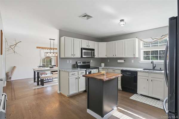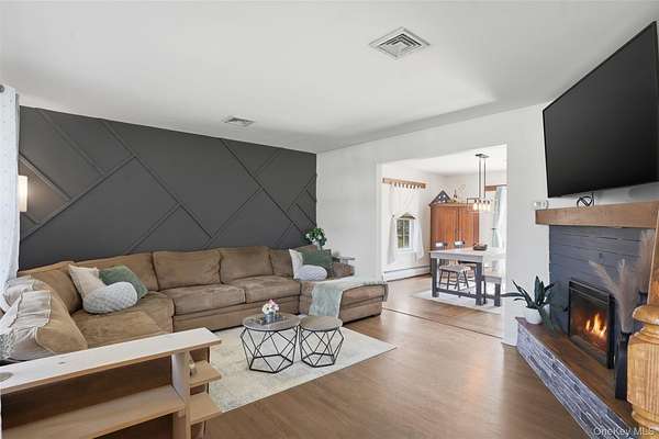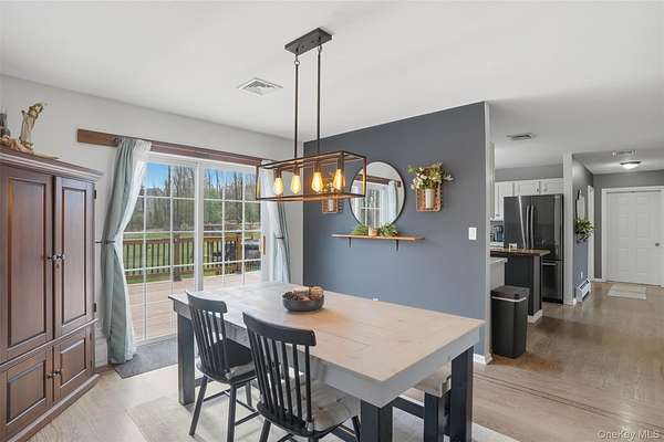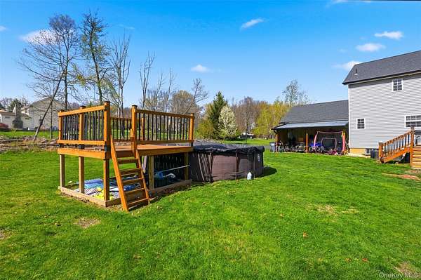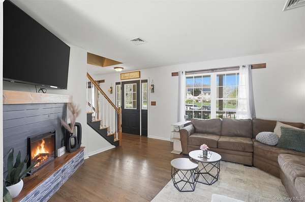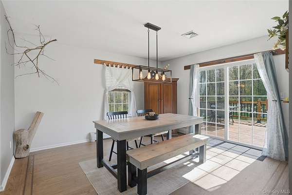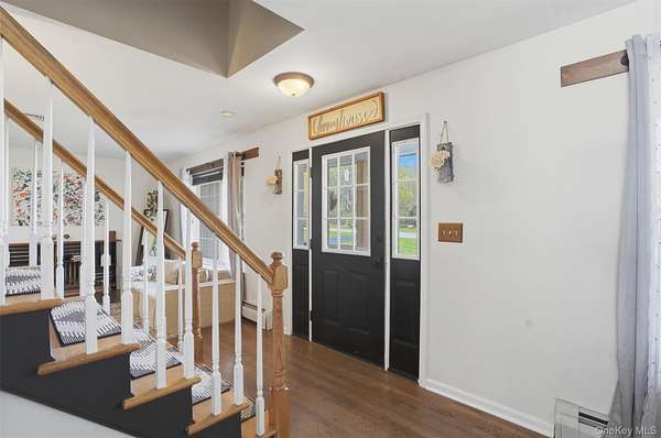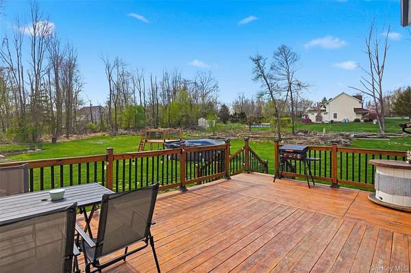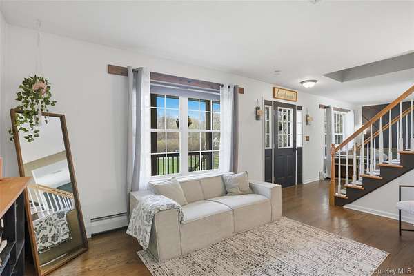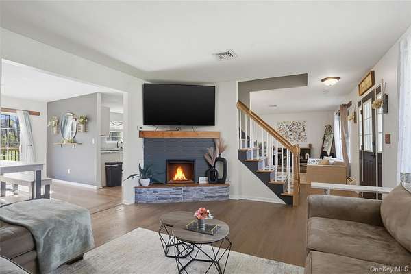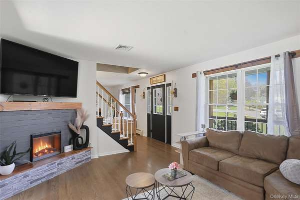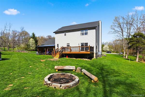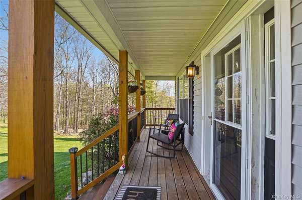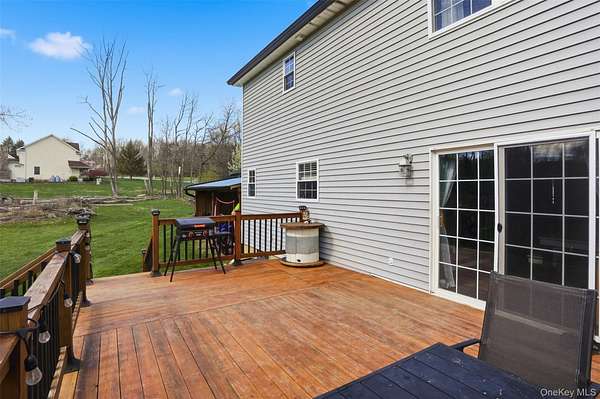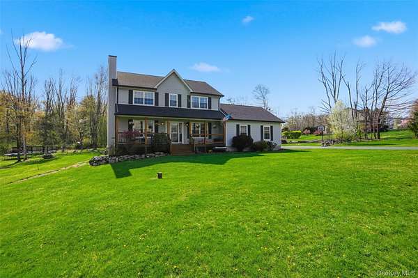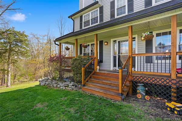 Tucked away at the end of a quiet cul-de-sac, 16 Fawn Court offers the kind of setting that feels like a retreat, yet remains incredibly connected to everything the Hudson Valley has to offer. Located in the desirable Minisink Valley School District, right on the edge of the Otisville Elementary zone, this location provides a thoughtful balance, making everyday routines both convenient and practical. Set on 2 private acres and positioned on a corner lot among a small collection of well-maintained homes, the property immediately stands out. A long paved driveway leads you past an open, grassy front yard to a newly covered front porch-an inviting place to start and end your day. You can pull right into the oversized two-car garage, currently utilized as a home gym, adding even more flexibility to the space. Inside, you're welcomed through a functional entry off the garage with a mudroom, laundry area, and half bath, perfectly designed for everyday living. The main level unfolds with a beautifully open, wraparound layout centered by a striking oak staircase. Natural light pours in through an abundance of windows, highlighting the rich hardwood floors that run throughout the entire first floor. The recently updated kitchen is both stylish and practical, featuring stainless steel appliances, a center island, and easy flow into the spacious dining room, where sliding doors lead out to an expanded back deck-ideal for entertaining or simply enjoying the peaceful surroundings. The living room offers warmth and character with a bay window and built-in electric fireplace, while an additional sitting room provides the perfect space for a home office, den, or second living area. Upstairs, you'll find three generously sized bedrooms and two full bathrooms, including an oversized primary suite designed for comfort and relaxation. Complete with a walk-in closet and a beautifully renovated bathroom featuring a tiled shower with a waterfall head, this space delivers a true spa-like experience at home. The outdoor lifestyle here is just as impressive. The expansive yard offers endless possibilities, from summer gatherings on the deck to evenings around the fire pit. A fenced-in area, currently used as a corral for ducks, could easily be transformed into a stunning garden space, while a pond and a cleared wooded section add to the property's natural charm. An open shed at the rear provides the perfect solution for storing lawn equipment and tools, keeping everything organized and accessible. With recent updates including a new roof, driveway, AC condenser, water heater, and kitchen counters, this home has been thoughtfully maintained and improved over time. Set in the heart of the Hudson Valley, you're surrounded by hiking and biking trails, wineries, distilleries, and beloved farm-to-table restaurants, all while enjoying the peace and privacy of your own property. Just 8 miles to the train and under two hours to NYC by car, this location truly offers the best of both worlds.