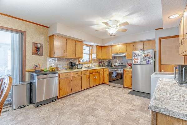 - Covered Patio, Fully Fenced, Outside Storage Area, Storm Cellar, Wood Fence