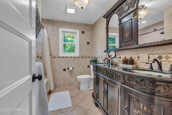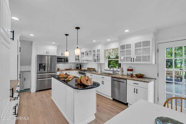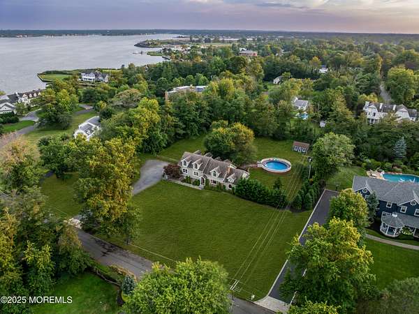 Situated on one of Rumson's most coveted streets, this beautifully renovated 4-bedroom, 4-bath home sits on 1.5 acres of lush, manicured grounds directly across from the Shrewsbury River. The inviting layout includes a vaulted-ceiling dining room, an eat-in kitchen, and an oversized primary suite with a luxurious bath and convenient laundry area. A top-floor great room offers sweeping water views, while the expansive deck, pool, and firepit set the stage for unforgettable summer entertaining. The fenced backyard provides a tranquil, estate-like setting perfect for pets. Complete with a 2-car garage, this property combines privacy, prestige, and an exceptional location.