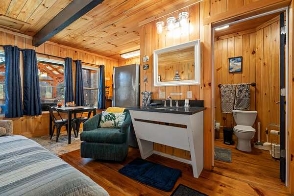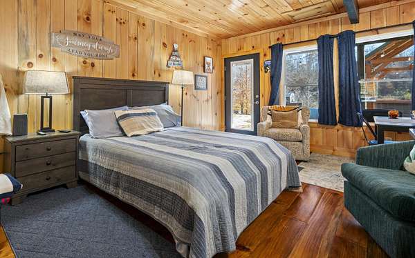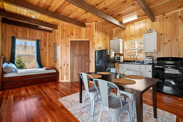 Presenting two short term rental cabins less than two years old, private, and already renting! These are well built cabins with a shared laundry facility at the entrance to the property. A skilled STR cleaner is willing to stay with the property. Each cabin is one bedroom and one bathroom. Both have hot tubs, decks, and they are located next to each other. The well will be shared with all four cabins. Also, note, this listing is part of the listing: Imagine MLS 26001244; Survey to be completed, acreage is approximate.