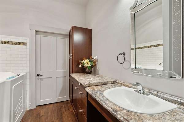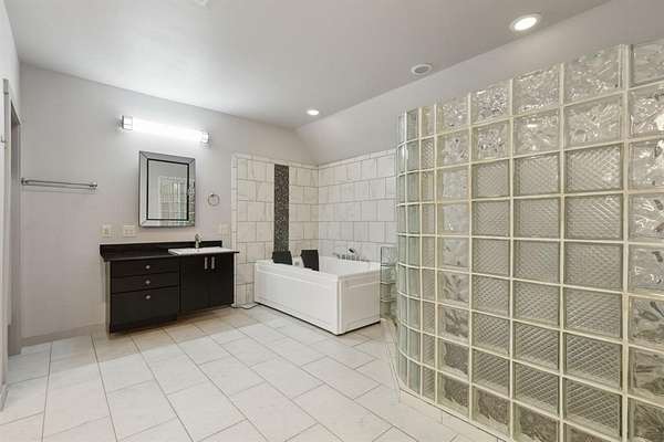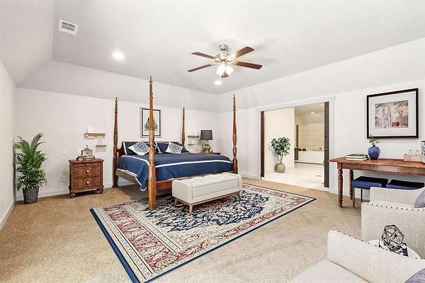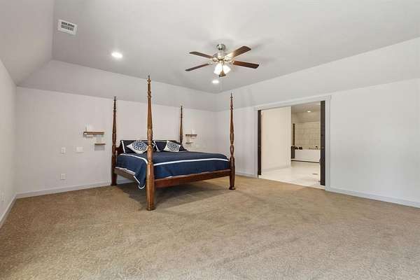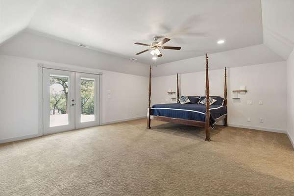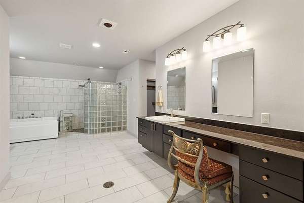 The Texas-sized primary suite is a true retreat, featuring two expansive closets and a luxurious ensuite bath, ensuring plenty of space for relaxation and storage.
