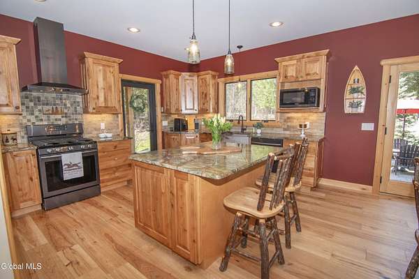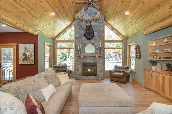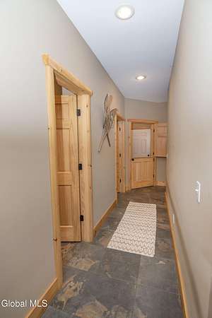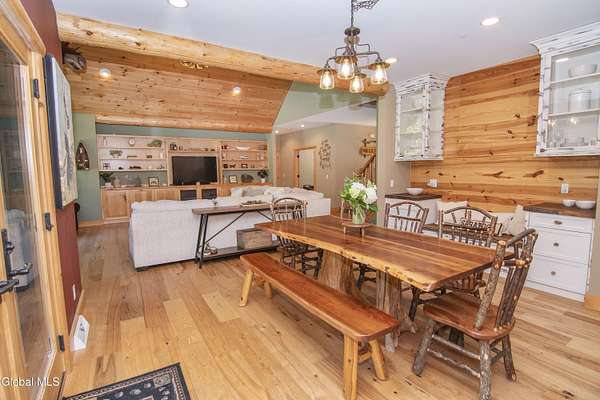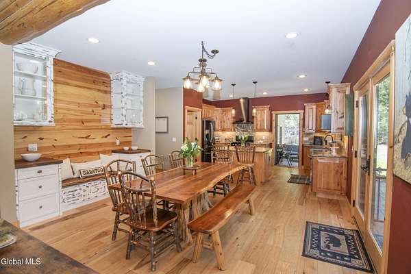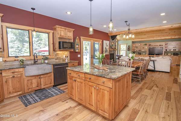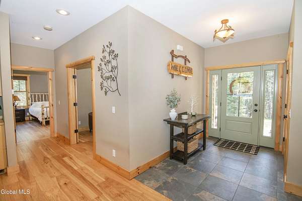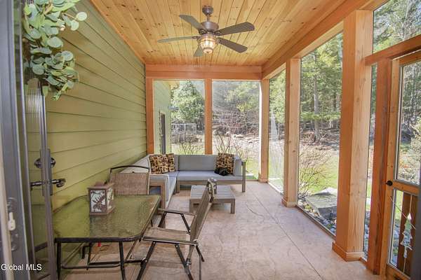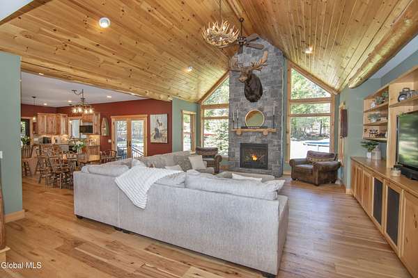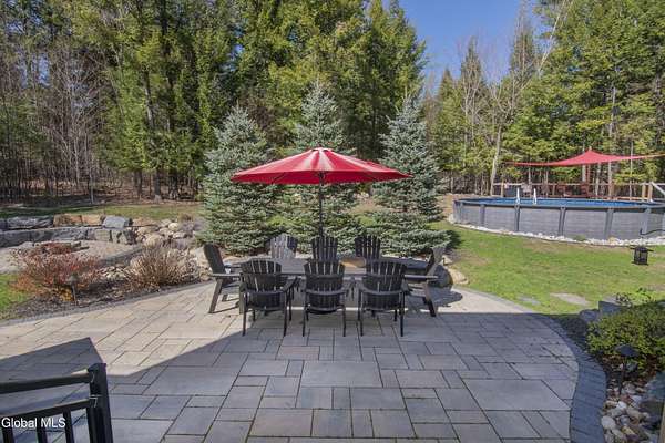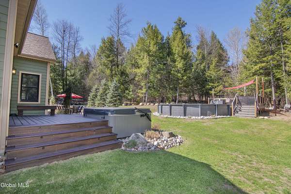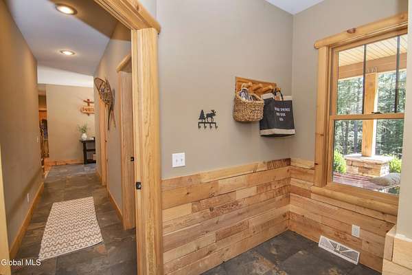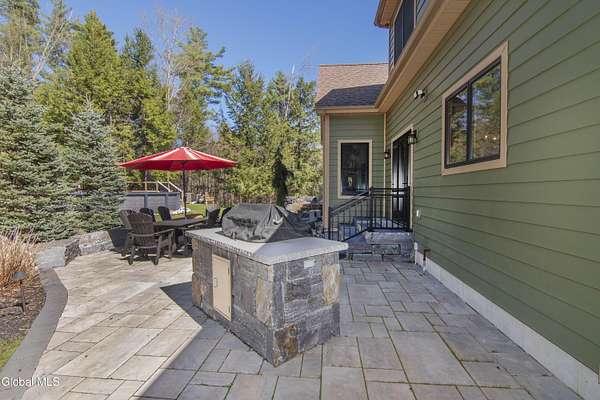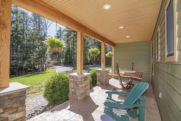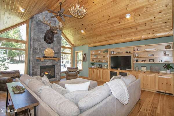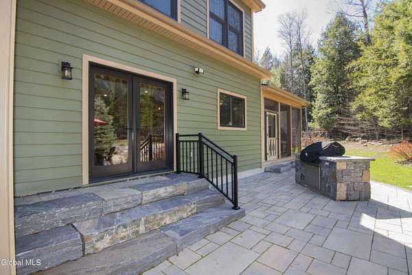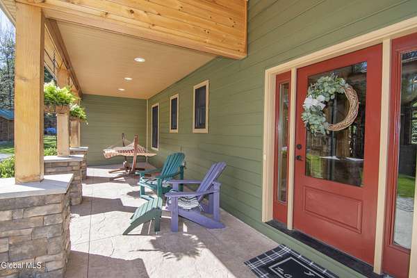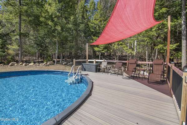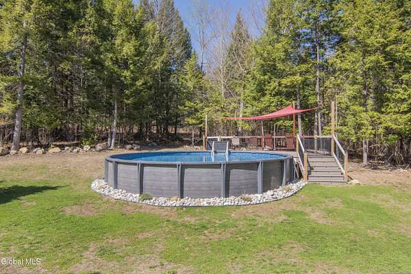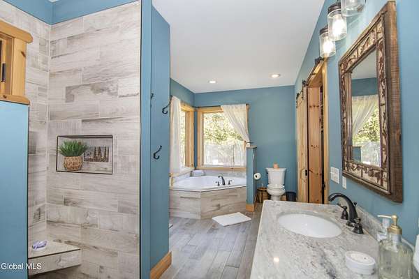 Discover Your Own Private Adirondack Retreat: Luxury Meets Nature just 9 mi. from Downtown Saratoga. Nestled in the serene landscapes of Greenfield, within the Saratoga Springs School District, this exquisite custom Adirondack home offers a harmonious blend of luxury and nature. This stunning rustic-modern home was thoughtfully designed by the sellers and built by Cartier Construction in 2017 with great consideration for privacy, efficiency, and capturing its unique setting. Overlooking the picturesque 3-mile Peacock Brook, the home is accessed via its own private highway-rated bridge and encircled in trees. Groomed trails leading to miles of recreational state land make this six-acre setting feel like hundreds, and it offers a cul-de-sac setting with mountain views and similar homes, reminding you that you're still part of a community. Adirondack design elements, natural materials, and fine finishings, create a warm, yet impressive place to entertain - and call home. Since purchase, the owners have enhanced the home further, by adding efficient radiant heat inside and intentional landscaping, fruit trees, an oversized and professional hardscaped patio, firepit, hot tub, saltwater pool with trex deck, and exterior lighting. Other interior highlights include: Hickory wide-plank engineered flooring, floor-to-ceiling granite gas fireplace and surround, rainforest marble countertops, custom pine trim work throughout, solid wood doors, hickory railings and stone cabinet knobs both sourced from the property, soaking tub and tiled primary shower, Andersen 400 series windows, Outside you'll find: screened porch, 8-person hot tub off the primary suite, upgraded insulated vinyl shakes/horizontal siding, auto generator backup, covered front porch with timber frame entry and more! This haven feels like your own Lake Placid lodge inside and out, but offers the proximity to Saratoga and the Capital Region. See it for yourself!