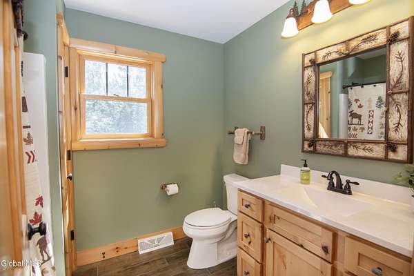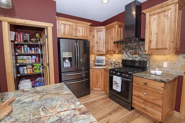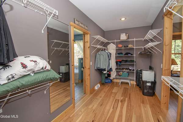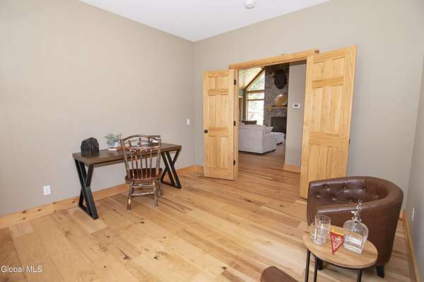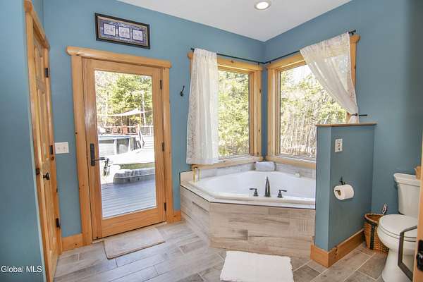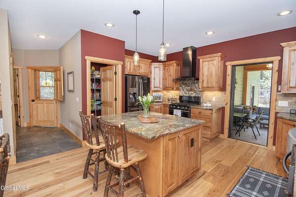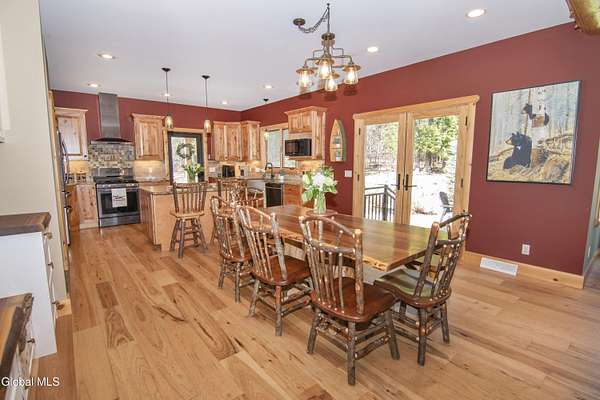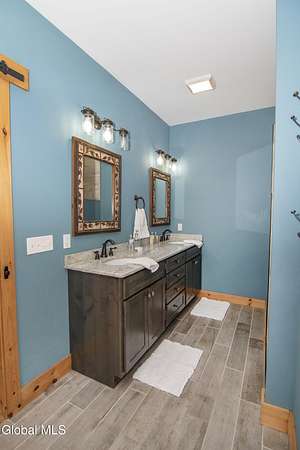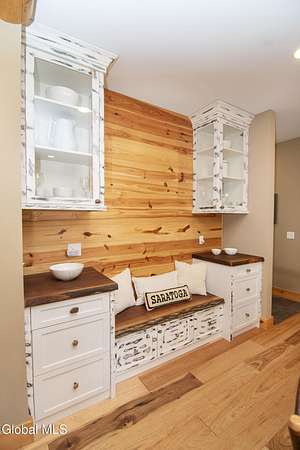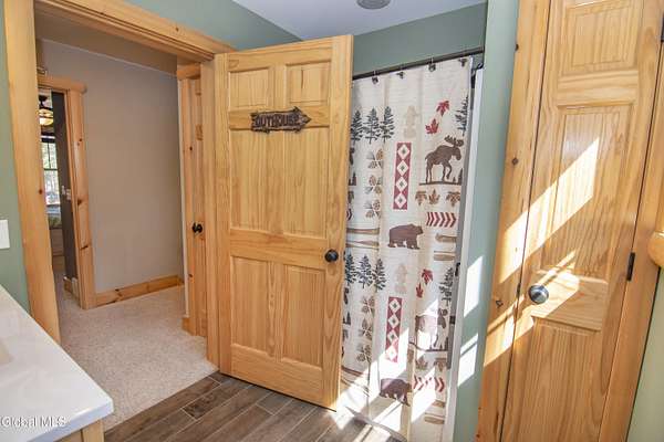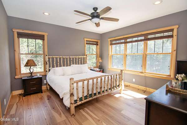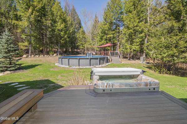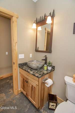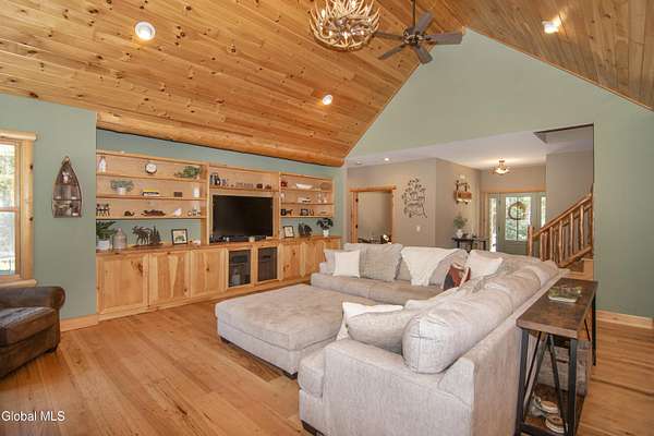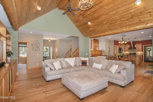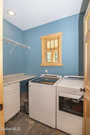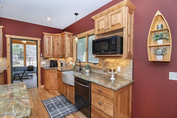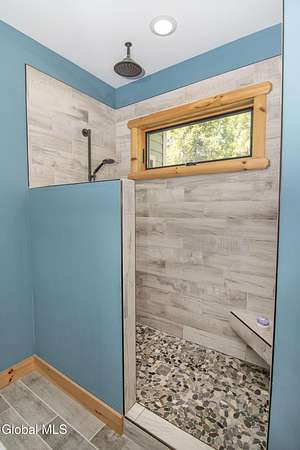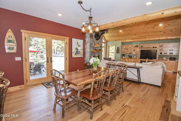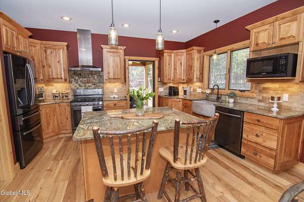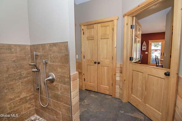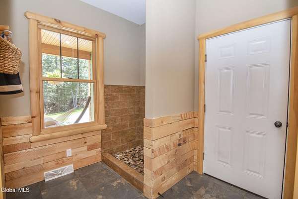 Discover Your Own Private Adirondack Retreat: Luxury Meets Nature just 9 mi. from Downtown Saratoga. Nestled in the serene landscapes of Greenfield, within the Saratoga Springs School District, this exquisite custom Adirondack home offers a harmonious blend of luxury and nature. This stunning rustic-modern home was thoughtfully designed by the sellers and built by Cartier Construction in 2017 with great consideration for privacy, efficiency, and capturing its unique setting. Overlooking the picturesque 3-mile Peacock Brook, the home is accessed via its own private highway-rated bridge and encircled in trees. Groomed trails leading to miles of recreational state land make this six-acre setting feel like hundreds, and it offers a cul-de-sac setting with mountain views and similar homes, reminding you that you're still part of a community. Adirondack design elements, natural materials, and fine finishings, create a warm, yet impressive place to entertain - and call home. Since purchase, the owners have enhanced the home further, by adding efficient radiant heat inside and intentional landscaping, fruit trees, an oversized and professional hardscaped patio, firepit, hot tub, saltwater pool with trex deck, and exterior lighting. Other interior highlights include: Hickory wide-plank engineered flooring, floor-to-ceiling granite gas fireplace and surround, rainforest marble countertops, custom pine trim work throughout, solid wood doors, hickory railings and stone cabinet knobs both sourced from the property, soaking tub and tiled primary shower, Andersen 400 series windows, Outside you'll find: screened porch, 8-person hot tub off the primary suite, upgraded insulated vinyl shakes/horizontal siding, auto generator backup, covered front porch with timber frame entry and more! This haven feels like your own Lake Placid lodge inside and out, but offers the proximity to Saratoga and the Capital Region. See it for yourself!