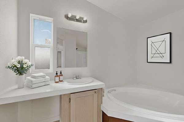 - Ceiling Fans, Country Kitchen, Garden Tub Roman Tub, Main Level Primary, Walk In Closets