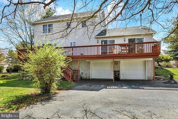 This beautifully designed two-story home offers five spacious bedrooms and 4.5 bathrooms, perfectly situated on a private cul-de-sac street with spectacular views. Thoughtfully laid out for both comfort and functionality, the home features central air and a 50-year roof installed in 2012, providing long-term peace of mind. The main floor includes two bedrooms and two full bathrooms, offering convenience and flexibility for guests or multi-generational living. A former in-law suite has been seamlessly opened to maximize space, creating a versatile expanded area off the main kitchen, enhanced by a cozy pellet stove-perfect for relaxing or gathering. The living room features a fireplace with a wood-burning stove insert, adding warmth and charm. Large windows throughout the home invite abundant natural light while showcasing the surrounding scenery. Upstairs, you'll find three additional bedrooms along with two full bathrooms, offering ample space and privacy for family and guests. The primary bedroom serves as a private retreat, complete with a generous walk-in closet and an en suite bathroom designed for comfort and relaxation. Step outside to enjoy the expansive 50x8-foot rear deck-ideal for outdoor dining, entertaining, or simply taking in the peaceful views. A 16' x 10' shed provides additional storage, while the oversized two-car garage offers ample space for vehicles, hobbies, or a workshop. Conveniently located just minutes from I-78 and Route 61, and close to restaurants and local attractions, this home blends suburban tranquility with everyday accessibility-offering a well-rounded lifestyle in a highly desirable setting.