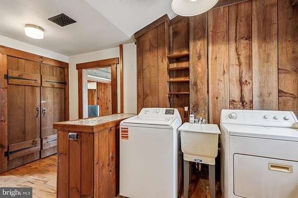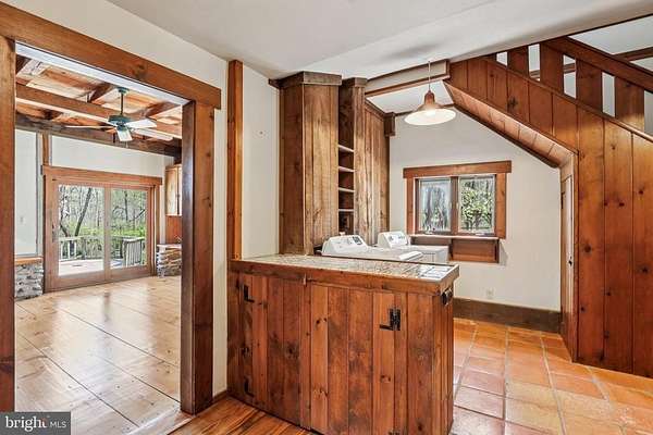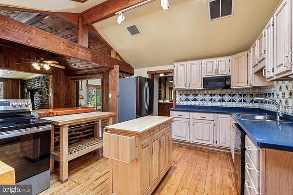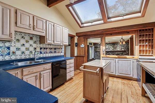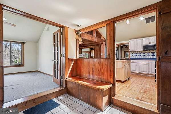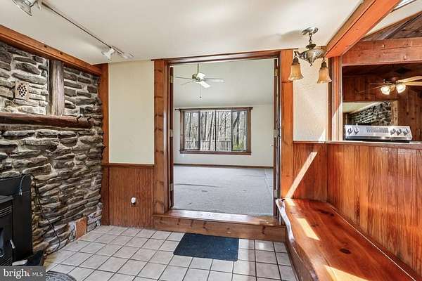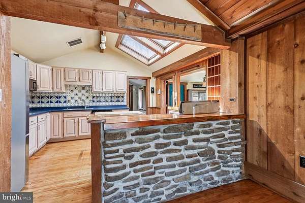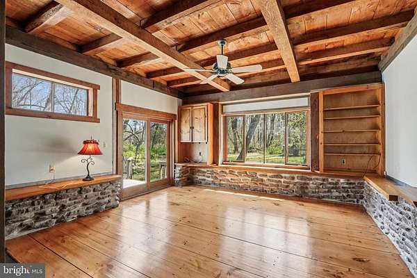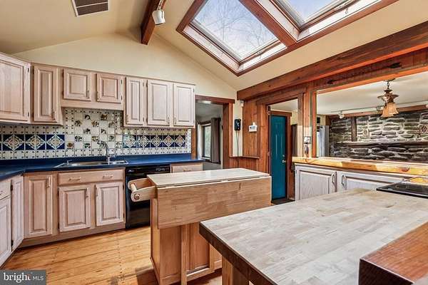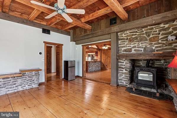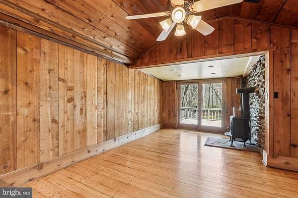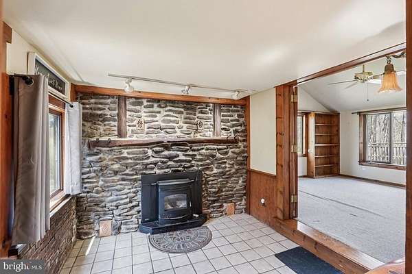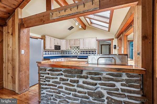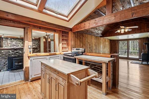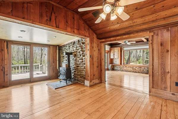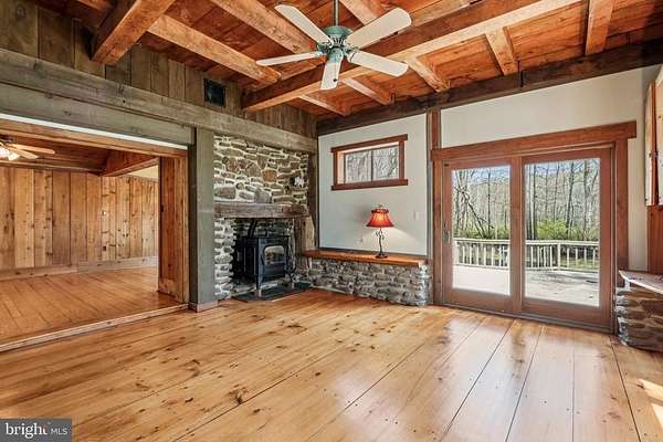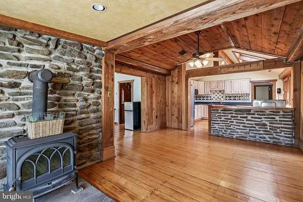 Escape to the Sourlands: Cedar & Stone Home with Woodland Views!Nestled in the scenic Sourlands and just minutes from the charm of Hopewell Borough, this cedar-and-stone home is a true private retreat surrounded by thousands of acres of preserved woodland and trails. Set on just over 3 acres, it offers the perfect blend of serenity and convenience, located between Flemington, Lambertville, and Princeton, and within the award-winning Hopewell Valley Regional School District.Rich natural materials and post-and-beam construction create warmth and character throughout, starting with a striking foyer featuring a full-wall stone fireplace with chiseled beam mantel and pellet stove insert. The original entry, believed to have once been a small hunting cabin, adds a touch of history and charm around which the home was thoughtfully expanded. All the wood floors within the home were just recently refinished.Just off the foyer, a spacious office or library with vaulted ceilings, French doors, built-in shelving, and woodland views offers a peaceful place to work or unwind. The kitchen, with oak cabinetry, skylights, Spanish tile backsplash, and a brand-new stainless range (March 2026), flows seamlessly into the cedar-planked dining area. A stone half-wall connects the spaces while keeping the open, airy feel.The dining room, with a cozy wood stove and sitting nook, opens to a living room with soaring exposed beams, built-ins, bay window, and a second stone fireplace with pellet stove insert. Sliding glass doors from both spaces lead to a tiered deck overlooking gardens and natural surroundingsperfect for summer gatherings or quiet mornings with a cup of coffee.The main level also offers a flexible bedroom suite with adjoining sitting roomcurrently housing a removable tornado shelterideal for guests, multi-generational living, or a private workspace. A full bath with slate-tiled walk-in shower and a laundry/mudroom with new washer (March 2026) and rear yard access complete this level.Upstairs, two bright, spacious bedrooms with vaulted ceilings and ceiling fans offer comfort and plenty of storageincluding walk-in closets. One bedroom opens to a private balcony overlooking the backyard. The upper-level bath features dual granite vanities, walk-in shower, tile and river stone flooring, and a dedicated sauna.Additional features include central air, an auto-metered oil tank, and a newer septic system (2018). A utility room with workbench, plus a chicken coop and large tool shed, add versatility and charm.Municipal inspections are complete, and reports are available for review. With possession available immediately, you can start enjoying this remarkable home and start planning your Memorial Day barbecue!A very special property offering character, comfort, and the perfect setting for everyday life and entertaining. It's truly one of a kind!