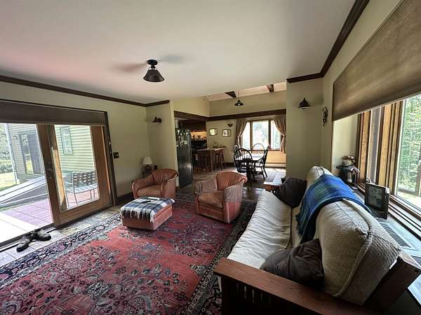 Step into this warm, inviting home, and you may never want to leave. Tucked away on a private road just three minutes from Mount Snow's north entrance, this sunny retreat offers winter views of the mountain and a lifestyle that feels both relaxed and rejuvenating. Situated on 3.7 combined acres (2.75 in Dover, 0.95 in Stratton), there's plenty of open lawn space for kids and pets to run free. Nature lovers will enjoy a spring-fed pond with frequent visits from herons in summer, while winter evenings sparkle with the glow of Mount Snow's grooming machines. This expanded New England-style Saltbox features three bedrooms and two baths, including a primary suite with sauna. You'll find two cozy fireplaces, a large open kitchen/dining area with a Garland cook stove, and plenty of character throughout, including an open den space. Step outside to enjoy a spacious back deck or unwind on the covered front porch, basking in the afternoon sun. Two-bay garage offers drive-in convenience, and the basement workshop includes a 16-foot workbench, ample storage, and a laundry area--perfect for hobbyists or DIYers. Recent upgrades: New septic in 18/19, new windows & siding, standing seam metal roof, skylights, and fresh paint inside and out. Access to the VAST trail just 100 yards away. Perennial gardens for seasonal color. This is more than just a home--it's a lifestyle. Come experience it for yourself.