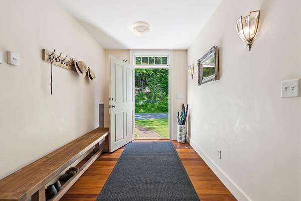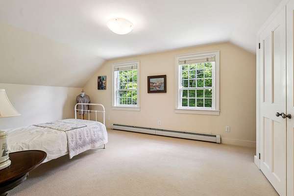 16 OLCOTT ROAD- Elegant, spacious, and immaculate reproduction colonial constructed by premier builder Douglas Gest in an idyllic location minutes to Norwich Village yet privately set with lovely westerly views. This gorgeous home is well-appointed, bright, and has fine finish work at every turn. The main level flows effortlessly from a spacious kitchen and pantry to open concept dining and family room areas and a grand granite patio with persistent views. Also on this level is a library in the southeast corner and a private office space that could provide the option for a future ground floor primary suite. The main second floor has three well-sized bedrooms while the primary suite features a large ensuite bathroom oriented to the west. Additionally, there is a spacious guest bedroom suite and a gym over the garage. On the third level is a bedroom with a full bath, and a bonus room. The land component consists of 7.5 acres with a large open field, mixed woods, and a perfect spot for an additional barn if desired on the northern side of the grounds. This highly desirable location and well-maintained home provide easy access to Hanover, Dartmouth College, Dartmouth Health, local schools, and abundant local trail access. Showings begin 2/4/26.