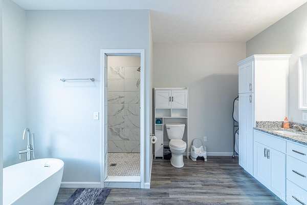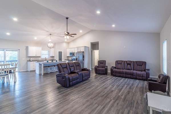Built in 2024, this 3 bedroom, 2 bath home offers approximately 2,022 sq ft of living space and sits on 44.66 acres. The home features an open concept layout with a spacious kitchen including a large island, granite countertops, and pantry. A walkout from the kitchen leads to a covered back deck overlooking a beautiful pond. The primary suite includes a large walk-in closet and adjoining bath with double vanity, soaking tub, and walk-in shower. The home also includes a full walk-out basement providing additional potential living space and convenient access to the outdoor setting. The acreage is primarily wooded with an abundance of wildlife including whitetail deer and turkey, making the property ideal for hunting, recreation, or enjoying peaceful country living.