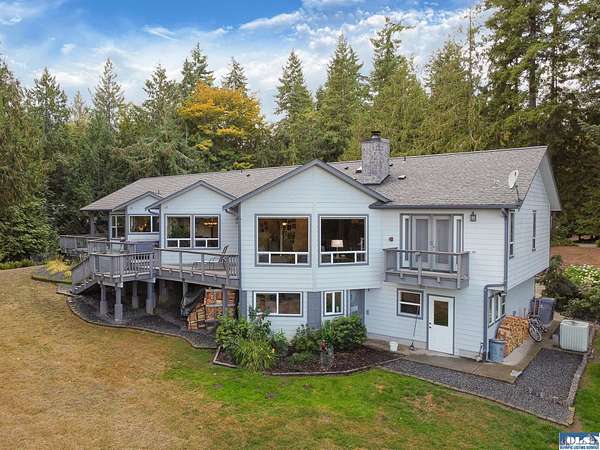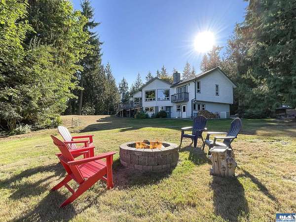 Experience all the modern comforts while enjoying total privacy and seclusion on a private road with no traffic. This stunning property features a main house with natural light, maple floors, granite counters, wood stove, central vac, jetted tub, walk-in shower, fresh interior paint, and electric car charging station. Enjoy the extra-large primary suite, modest saltwater view, and a serene water feature. Both buildings, including a fully equipped ADU currently used as an Airbnb, are wired for generators with a separate breaker panel for the well pump. There is a 2 car attached garage, detached single car and an RV height carport. With tons of storage and self-contained, sustainable living, this home is a wildlife lover’s paradise.