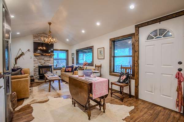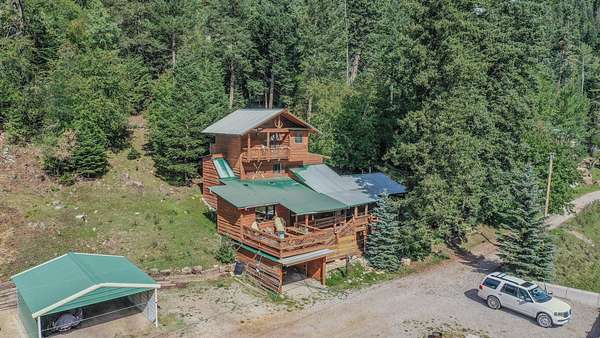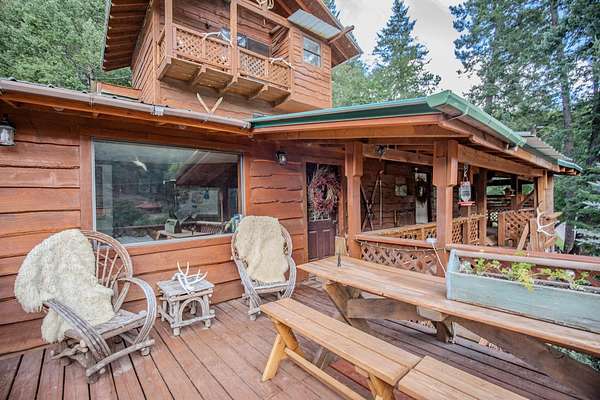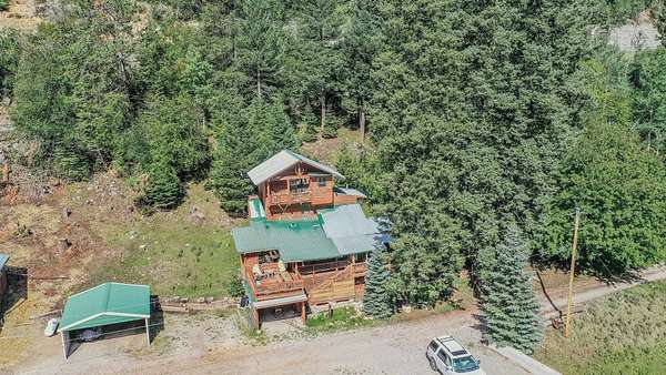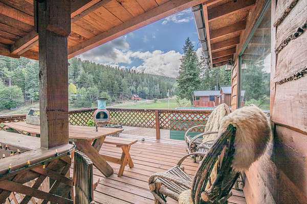 A true mountain home is now available on the highly sought after Pierce Canyon just off Sun Spot Highway. This cabin looks like it belongs in the Swiss Alps, and has been updated with a modern flair. This multi-level cabin has open and covered decks offering outstand views year around of the wildlife and mountainside. When you enter the home you are greeted by beautiful living and kitchen areas and the first of three bedrooms and 2 and quarter bathrooms. As you ascend, you'll be welcomed into the primary suite, complete with a private balcony and full bathroom. Continue to the next floor where you will find the third bedroom and another full bathroom. Looking for bonus space? The attic offers a perfect spot for a media room, playroom or a casual hangout space. Don't miss your chance to own 4.034 acres of paradise in one of the most coveted locations in the Cloudcroft area.