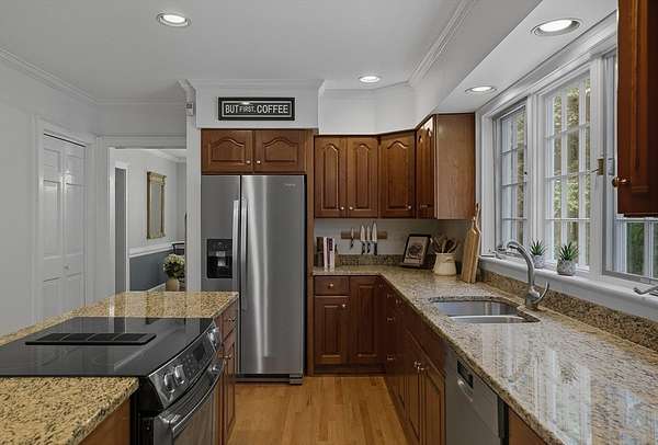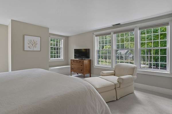 This original Campbell Smith designed Colonial blends classic charm w/ a welcoming, versatile floor plan! Nestled in a quiet cul-de-sac near the Northborough line & abutting scenic Morse Woods conservation land, this home offers both privacy & convenience to major highways/shopping. The spacious fireplace FR flows seamlessly into the open concept kitch featuring granite countertops, a large center island, pantry closets, & an eat-in dining area w/ access to a private rear deck. The formal DR boasts a boxed w/out window while the LR offers a cozy corner FP w/ marble surround. Throughout the home, you will find handsome HW flooring, extensive wainscoting, & elegant triple crown moldings that elevate every space. The 14x10 tiled mudrm provides access to the oversize garage which includes a w/up staircase to an unfinished loft. The primary bedrm features a dedicated dressing area, three large closets, built-in cedar lined benches, & beautiful full bath. An exceptional place to call home!