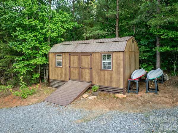 Spectacular handcrafted log home, complete with a private in-law suite tucked seamlessly into the lower level. Nestled on 1.6 acres in Grandview Peaks, a gated mountain community located in the heart of the Blue Ridge Mountains! The fully finished basement offers exceptional flexibility - perfect as a private in-law suite for multigenerational living, a comfortable space for extended family or guests, or an income-producing rental opportunity. It offers easy access & privacy with a separate dedicated driveway and entrance as well as a full kitchen, family room, en-suite bedroom and 2nd laundry room. The primary floor has all you need for main level living. The entryway opens to a spacious dining area, leading to the large kitchen w/ an eat-in island, gorgeous wood cabinets and a convenient walk-in pantry. The laundry room shares space with a half bathroom. The primary en-suite is open with high ceilings, a walk-in closet and a small loft tucked away for added storage space. Just steps away, the bedroom opens to the covered back porch where you can sip your morning coffee. Upstairs you'll find an open loft that's the perfect space for a home office/workout or hobby room. The second en-suite bedroom is also in the loft with it's own open deck to enjoy the surrounding nature and mountain views. Outdoor living here is every bit as enticing as inside with covered wrap-around porches & a level backyard for gardening, a playground, or relaxing around the campfire. Leading to the front entrance is a huge attached carport, tall enough to store an RV or boat & a detached 2-car garage & separate storage shed. No dangerous steep roads here...this home is located close to the gated community entrance for easy access to Marion & Morganton and just 45 minutes to Asheville. Residents enjoy swimming & fishing at the private community lake & beach. There's 5 miles of nature trails for hiking and weekly community gatherings at the lakeside pavilion. From the moment you arrive, this well cared for home invites you to live the dream - where rustic charm meets modern comfort. Schedule your tour today!