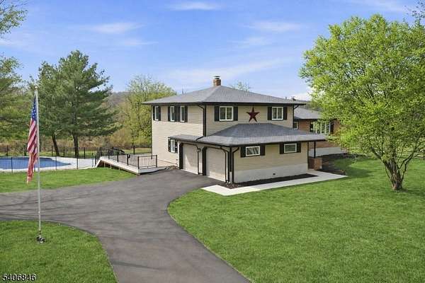 Welcome to 16 Schaaf Road, a STUNNING gut renovated home set on over 3 acres in beautiful Alexandria Township! This move in ready 3 bed, 3 bath home w/ 2 car garage blends modern design with quality craftsmanship. The main level features an open concept layout with seamless flow between the living, dining room, and kitchen. The chef's kitchen is thoughtfully designed with solid wood cabinetry, quartz countertops, tile backsplash, a large center island, & high end SS appliances. A sliding door opens to the upper Trex deck, offering expansive backyard views. Just off the foyer, the spacious family room is filled with natural light and features a brick fireplace, a full bath, and direct access to the lower deck level, creating a flexible everyday living space. The second level hosts the primary suite with an en suite bath & walk in closet, along with two additional well sized bedrooms and a fully reno'd hall bath. Hardwood flooring, recessed lighting, and a bright modern aesthetic continue throughout the home. Outdoor living truly shines with a multi level Trex deck and a fully renovated in ground pool, all surrounded by lush, park like grounds that provide privacy and a serene setting. Extensive upgrades include a brand new roof & gutters, HVAC, hwh, driveway, electrical panel, Trex decking, concrete pool, decking, and fencing, insulated garage doors, & SO many more. Located in one of New Jersey's most scenic areas, this exceptional property is waiting for you!