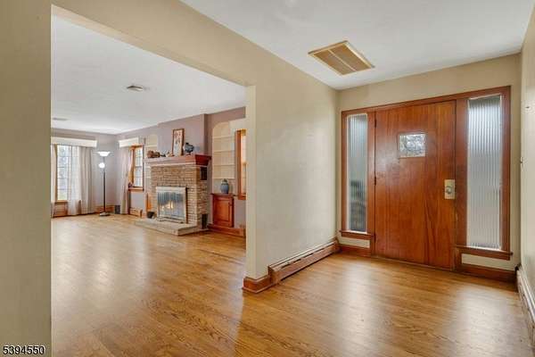3 bedroom/2bath spacious exp-ranch-Eik w/breakfast nook, built in spice cabinet, broom/pantry closet, stainless steel appliances, plenty of white cabinetry & counter space= high functioning workspace. Living room w/beautiful brick faced fireplace, generous wood mantle w/built in bookcases.(chimney =not warranted). Hardwood floors recently refinished & stained throughout liv rm, formal dining rm, foyer & bedrooms, Wide &deep hall closet. Sunroom=reading or board game space,/Enjoy 4 seasons. @ 1/2 mile to grade school & historic section of town. Each Bedroom w/ double wide cedar closets Primary has jack& Jill access bathroom. Walk up finished attic, wall to wall carpet, potential 4th bedroom or office or family room or a combo High, unfinished expansive basement w/ walkout access. 2 car garage & additional 6 car parking. Yard has parklike grounds, Washer/dryer not included, central ac/septic, above ground oil tank, well water. Basement will be delivered vacant.