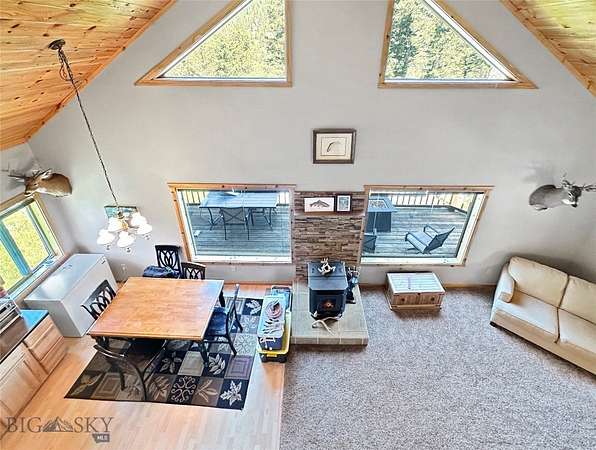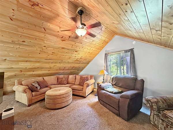 4 BED- 2 BATH cabin on TWO LOTS located in the trees close to National Forest Service and miles of back country trails for you to explore. Priced to sell including an assumable 2.625% loan Be independent with your own well, septic, electric (yet has a propane generator if needed). If you are ready to escape this chaotic world and find a perfect getaway high in the Tobacco Root Mountains then look no farther. You could easily add a wood stove to add to your independent lifestyle. Minutes from hunting in the National Forest. fish the South Boulder River or travel miles of trails to explore your back yard. Be sure to bring your side by side or 4 wheeler. This cabin is multi-level. The open main floor has a nicely appointed kitchen with a dining table that looks out at the view. 2 bedrooms & a full bath are located on the main floor and there are an additional 2 bedrooms and bath in the daylighted walk-out basement. The family room in the basement has a propane fireplace and the main floor has a pellet stove giving you different options for heat. Want a bit more elbow room then hit the loft which could be a great office or TV room where you can enjoy the loft windows which let in a lot of natural light. The road can be challenging in the winter but that will protect your privacy even more!! This cabin is offered with a second lot giving you future investment or building potential should you choose or just keep it for your solitude. There are two outbuildings giving you the perfect option to store your toys. Furniture could be purchased by private treaty making this your move in ready get-a-way just in time for summer. In Montana you don't just buy a property.....you purchase a new lifestyle - choose yours today!! Again......VA loan is assumable for qualified buyer (you do not have to be a Vet) at 2.625% interest. Call for details!