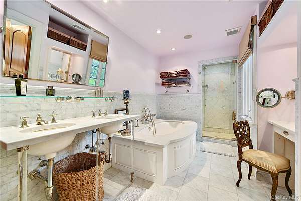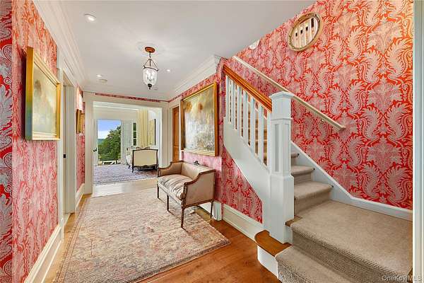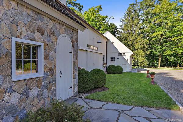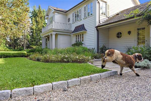GLORIOUS RESERVOIR VIEWS. Exceptional water views are aptly introduced by the front to back entry foyer and more intimately enjoyed upon waking-up in the upstairs primary bed! European style farmhouse sits on one of the most idyllic lots in town, meticulously appointed with Nantucket-style landscaping, expansive stonewalls, mature shade trees. Alfresco living central to this home's design with French doors and outdoor eating rooms. The farm-to-table lifestyle embodied by organic vegetable garden, potting shed, and significant post-and-beam horse barn, yet a mere 3 minutes from downtown Armonk's gourmet groceries, lattes and bagels that rival NYC. Property also boasts a revered school district; 8 minutes from Westchester Airport, and a 50-minute NYC commute. Other amenities include: expansive organic lawn/pasture, soccer field, parking for four autos, stalls for two horses, fabulous dog fetch grounds, a massive red raspberry patch, and a charming napping porch!