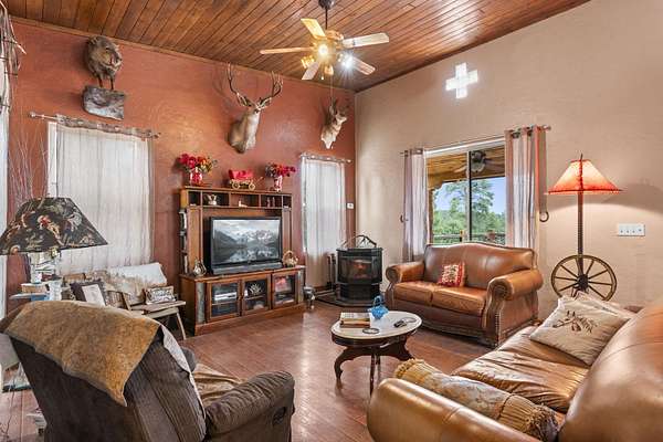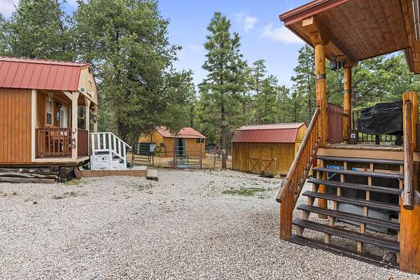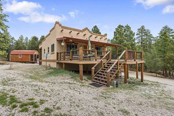 Fabulous 5+ acre horse property bordering the Cibola Nat'l Forest with your own direct private access! Gorgeous southwest pueblo style home with amazing decks for relaxing or entertaining outside located in the highly desirable Timberlake Ranch mountain community. Wonderful outdoor spaces here with numerous outbuildings including 400 sq ft horse barn with corral and huge 4 bay pole barn carport for your toys. And 3 full RV hookups for all your friends & family who you just know are going to want to come visit you! High speed internet available and whole house back up propane generator by Generac so you're never in the dark unless you want to be. Plus you'll enjoy private Ramah Lake access, HOA maintained roads, and abundant wildlife incl deer & elk often roaming right thru your property.