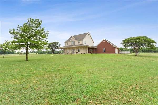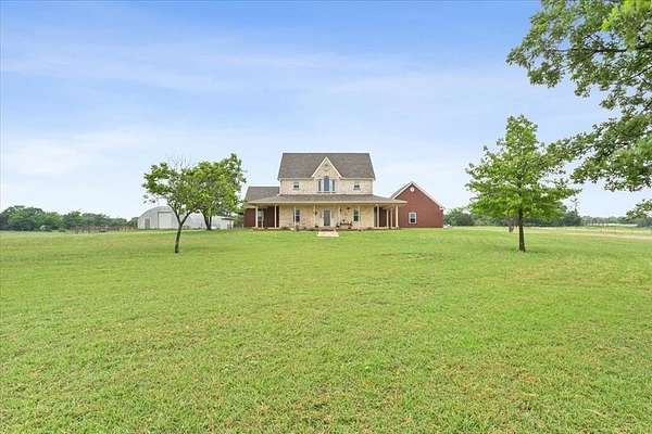 Set on more than 12 peaceful acres at the end of a quiet country road, this two-story home wraps you in comfort and privacy from the second you pull in. The wraparound porch feels like it was made for slow evenings in a rocking chair, watching the sun rise and set over your own stretch of Texas land.