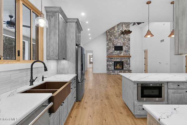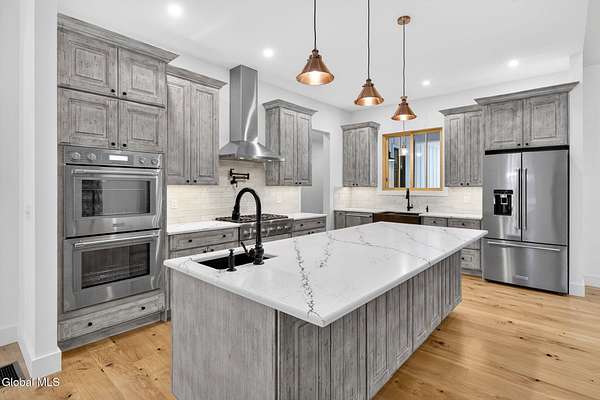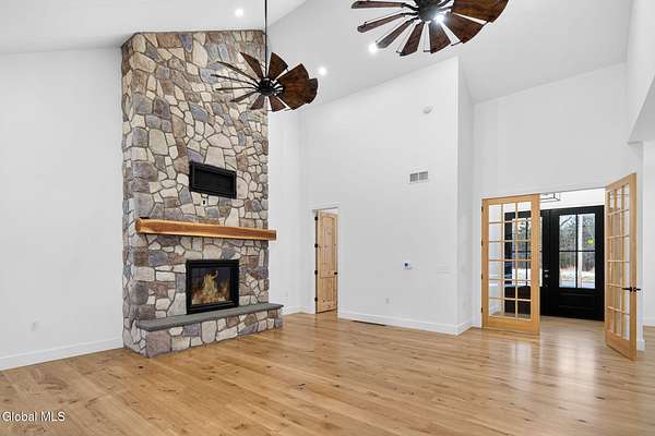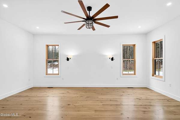 A rare opportunity to own a truly custom, never-lived-in modern ranch, thoughtfully designed and masterfully built as a forever home. Completed in 2025, this sprawling residence blends timeless materials with high-performance systems, offering coveted single-level living on just over five acres in Westerlo's picturesque countryside, surrounded by open land and Catskill Mountain scenery. Despite being newly constructed, the home carries a sense of warmth and permanence, feeling exceptionally quiet and filled with natural light. This modern farmhouse-inspired executive ranch balances open flow with intuitive, comfortable living. Features include geothermal HVAC, commercial-grade mechanical systems, smart home functionality, wide-plank white oak flooring with natural pine trim and finishes, a gourmet kitchen, a custom stone fireplace, a walk-in butler's pantry, and a beautifully appointed formal laundry room with cabinetry. The primary suite is thoughtfully connected to an oversized walk-in closet with island. Four bedrooms (including a flexible office or guest space) and 2.5 baths complete the main level. The full basement offers approximately 9-foot ceilings with dual access from the garage and rear patio, presenting exceptional potential for future finished living space. Additional highlights include a three-car attached garage with 13-foot ceilings, new well and septic, and nearly every major component of the home carrying a one-time transferable warranty, providing outstanding peace of mind. Located approximately 30 minutes from downtown Albany and the New York State Thruway, under 40 minutes to Hunter Mountain, and about an hour to Saratoga Springs, this home offers both privacy and accessibility. From its quiet strength and natural light to its thoughtful design and enduring materials, this home delivers a rare sense of comfort, permanence, and ease.