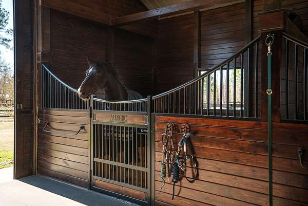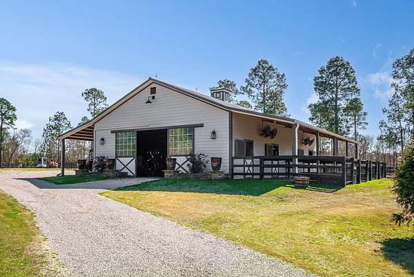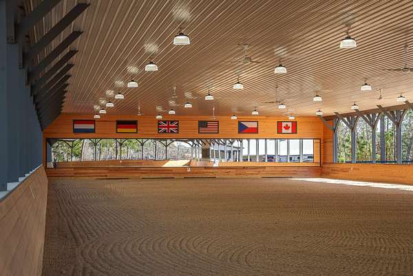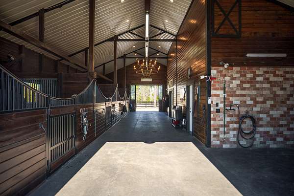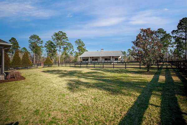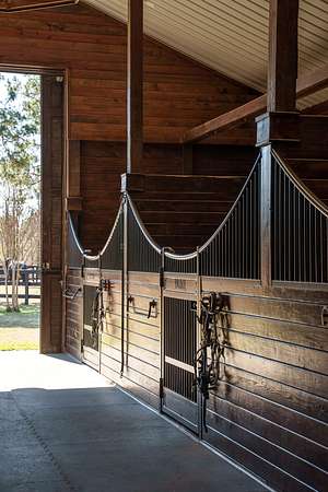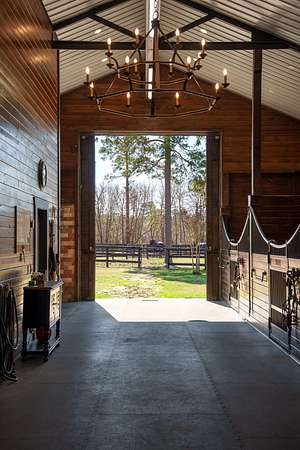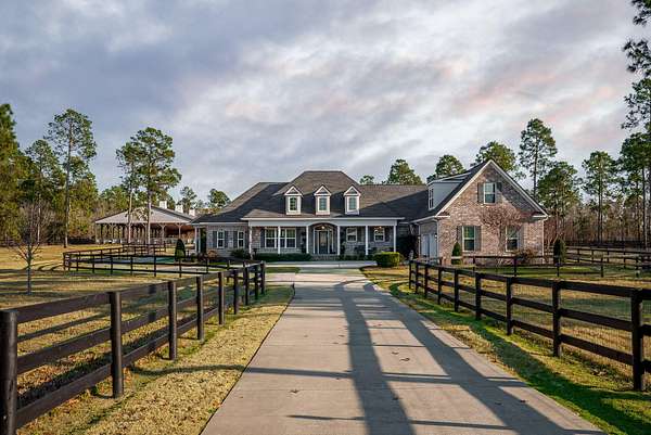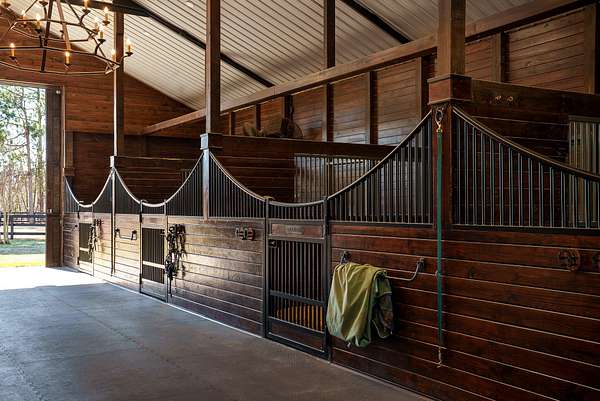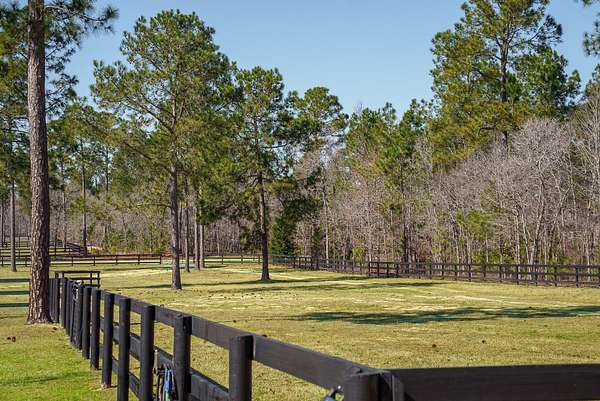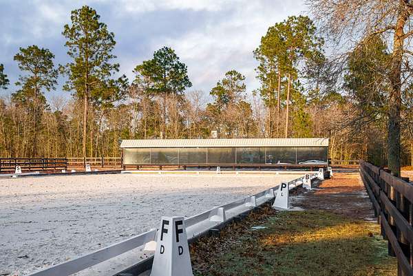 Freedom Reigns Equestrian - Purpose-Built Equestrian Excellence. Situated on 7.81 level acres in the prestigious Three Runs Plantation, 160 Dasher Circle was thoughtfully designed for serious equestrian pursuit. Located adjacent to Three Runs' South amenity complex with direct access to dressage, jumping, cross-country arenas, 30+ miles of deeded trails and the clubhouse/fitness center, this property offers exceptional privacy, function, and performance. This Showcase property has a 72' x 200' Covered Dressage Arena constructed by Iron Horse Construction, ideal for year-round training. The professionally engineered arena features rider guards for comfort and safety, lighting, ceiling fans, attractive arched Y-bracing, copper-roofed cupolas, and oversized low-iron glass mirrors. ArenaMend dust-free, waterless footing provides advanced fiber technology for consistent performance without irrigation. An attached screened viewing lounge includes a heated & cooled powder room with laundry and a kitchenette with a full refrigerator, undermount sink and custom cabinetry. A fully renovated European-Style, center-aisle, climate-controlled barn, is a luxury for horse and rider. A Ralph Lauren double-tier Robertson Chandelier sets the stage for the renovation. There are four 14' x 12' Heritage European stalls with runouts for additional movement, Dutch windows, new stall mats and fans, easy maintenance custom tiled wash stall with hot/cold water, automated fly spray, and a generous storage area. A fully renovated climate-controlled feed room has all the essentials: refrigerator, custom cabinetry, white farm sink, butcher block counter, and room for all your feed & supplies. The designer inspired climate-controlled tack room features a beautiful Curry and Company oyster shell chandelier that elevates the space, a reminder that there are no limits to what you can do! Nuts & Bolts include a new gravel driveway to and from the barn, two shutter exhaust fans at each barn gable allow the removal of heat/humidity, 3-HP well, 200-amp panel, generator-ready wiring, and an oversized rear shed row ideal for equipment / storage. Paddocks & Grounds include 8 cross-fenced paddocks, 6 of which are newly added, full home perimeter no climb fencing to 7 paddocks along interior; irrigated landscaping and an expansive number of additional tree plantings enhance the property. Luxury and comfort continue in the property's 2016 custom home, built by Sean Wolf. With a generous 4,106 sq. ft., you will love the home's spaciousness, vaulted ceilings, newly refinished oak floors and the expansive Great Room with a handsome, corner gas fireplace, perfect for entertaining. The chef's kitchen's bar seating creates a seamless transition to the kitchen workspace which includes attractive custom cabinetry, a central island, granite counters, a spacious walk-in pantry, and appliances including a Miele dishwasher and dual-temp wine cooler. A lovely primary suite enjoys a bedroom with views to the barn and paddocks, a beautiful bath with dual vanities and a well-designed walk-in closet. You and your guests will enjoy the privacy offered by the main-level split bedroom layout in addition to a private, upstairs guest suite. Additional spaces include a den/music room and a gym/flex room with separate entrance. In addition, home features include a Whole House Dehumidifier and Remy halo for buyers peace of mind. Three Runs' amenities also include the main clubhouse, pool, and main equestrian complex with mirrored dressage and jumping arena. A rare opportunity awaits the equestrian who embraces the pursuit of excellence! With advanced footing technology, climate-conscious design and a premier location, 160 Dasher Circle offers a turnkey, private training compound and playground for horse and rider. Turnkey. Engineered. Elevated.