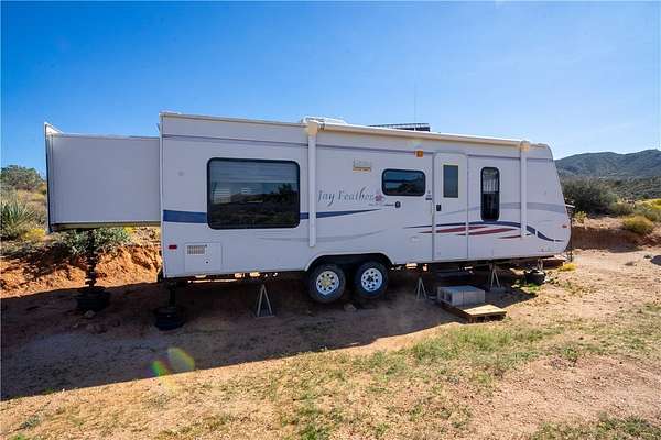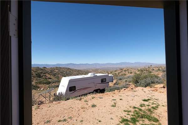 From Kingman, I-40 East to Hwy 93 South. Between MP 110 and 111, turn Left onto Lower Trout Creek. Zero your odometer once your tires are on dirt (but miles are approximate). .6 L on Upper Trout Creek, 2.0 trend R on Bogles Ranch Road, 2.3 CAUTION when crossing Big Sandy - use alternate if it's closed, 7.8 L on Cindy (not marked-look for my sign), pass 1st driveway on left, go left at 2nd driveway. Park in front of trailer. Alternate approach exists using Back Road through Wikieup if Big Sandy is not passable. 4WD recommended but not required if it's dry.