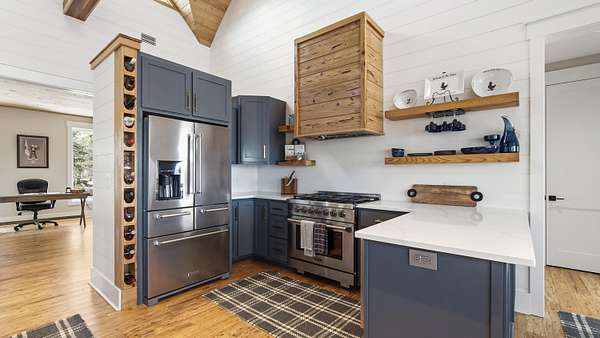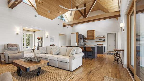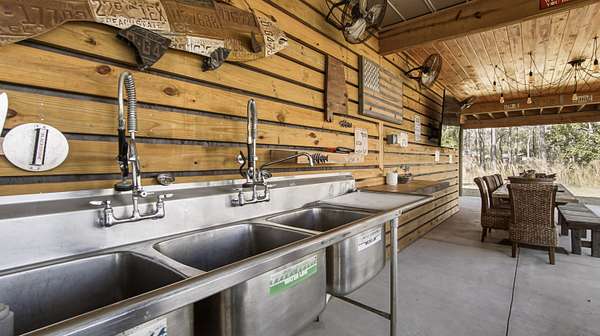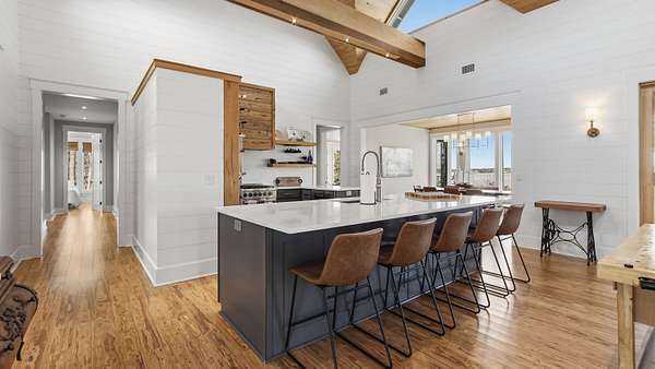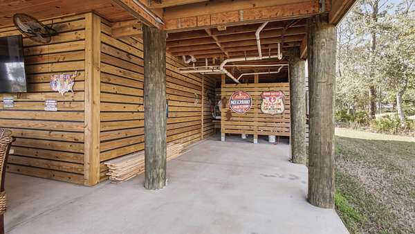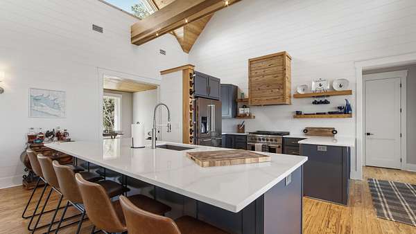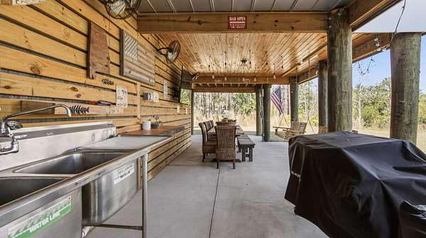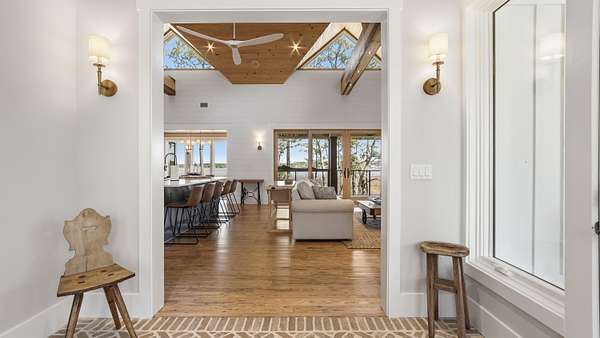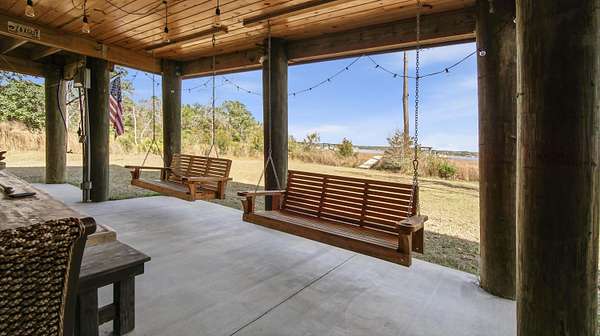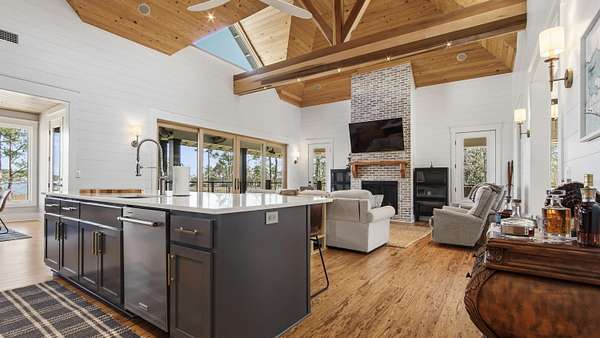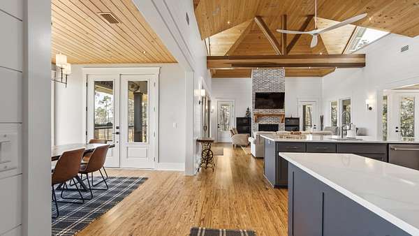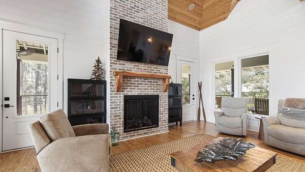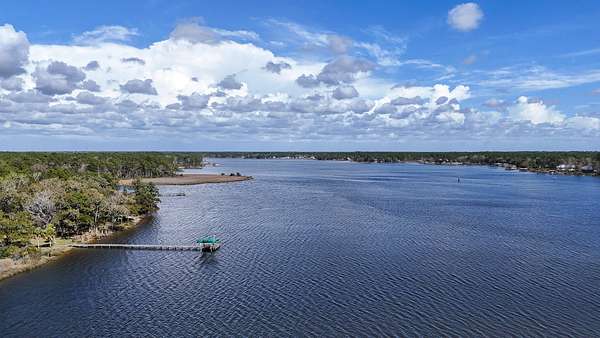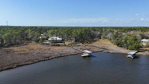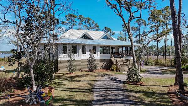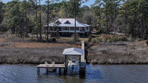 Waterfront Luxury on 3+ Acres with 300 Ft of Bayou Frontage Welcome to 160 Eventide Lane in Freeport, FL, a breathtaking, Simmons Home Builders custom built waterfront home inspired by Southern Living's New Tideland Haven floor plan. Perfectly situated on over 3.07 private acres with more than 300 feet of frontage on beautiful Lagrange Bayou, this property offers sweeping panoramic water views and the ultimate coastal lifestyle. This thoughtfully designed home features 2,622 square feet of heated and cooled living space, showcasing 3 bedrooms, 4 full bathrooms, plus an additional office/study or flex room that can easily serve as a home office, guest room, or hobby space. The open-concept design is highlighted by vaulted ceilings, exposed wood beams, and walls of windows that flood the home with natural light while capturing stunning bayou views. A striking driftwood gas fireplace anchors the living room, while a built-in surround sound music system enhances the home's entertainment experience. The chef's kitchen is beautifully appointed with modern appliances, a gas range, custom pecky cypress hood vent, gold/brass fixtures, and an enormous walk-in pantry, offering both style and functionality. Just off the kitchen is a formal dining room, perfect for hosting gatherings and special occasions. Sliding glass doors lead to expansive wraparound porches, seamlessly blending indoor and outdoor living while showcasing the tranquil waterfront setting. The spacious primary suite serves as a relaxing retreat and features a private balcony overlooking the bayou, providing the perfect spot to enjoy morning coffee or evening sunsets. The luxurious primary bath includes a freestanding soaking tub, separate tiled shower, and an oversized walk-in closet. Throughout the home you'll find cypress tongue-and-groove ceilings, beautifully tiled showers, custom finishes, large guest bedrooms with walk-in closets, and abundant storage space. On the ground level, the property offers a one-car garage with an additional 800-square-foot insulated, heated, and cooled space that is not included in the home's 2,622 heated/cooled square footage. This versatile area includes an outdoor shower, commercial-style restaurant sink, and covered space ideal for outdoor grilling, lounging, relaxing, and entertaining, making it perfect for hosting friends and family after a day on the water. Enjoy true waterfront living with a 300-foot private dock leading to your very own covered boat lift and sundeck, providing easy access to boating, fishing, paddle-boarding, and breathtaking sunsets across Lagrange Bayou to the Choctawhatchee Bay. Located in the desirable NO HOA, Cross Creek Shores subdivision just off Bay Loop Road (with over 15 miles of adjacent paved walking or biking path), this rare waterfront estate offers privacy and space while remaining just minutes from the beaches of South Walton, Hammock Bay General Store, Freeport Regional Sports Complex, Props Brewery, public boat launches, a brand new Marina with boat storage, more dining, and shopping. So if you've been searching for a luxury custom waterfront home with acreage, superior craftmanship, breathtaking views, and direct bayou and bay access, this one-of-a-kind property is a must see; never miss a sunrise or sunset on the water again.