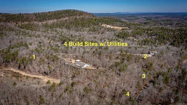 Discover privacy, acreage, and endless potential with this 16.78-acre estate near Hot Springs, ideal for a family compound, multigenerational living, private retreat, or investment property. The 3,112 sq ft home offers spacious rooms, an open great room, breakfast nook, formal dining room, and a large covered back porch perfect for entertaining and outdoor living. A rock fountain creates a peaceful backyard setting for relaxing evenings. The primary suite features an ensuite bath and private sunroom with hot tub, creating the perfect personal retreat. A versatile guest room includes a built-in desk and Murphy bed, ideal for a home office, remote work space, or guests. Property includes four additional buildable homesites with utilities available, plus an additional 3.13-acre parcel with foundation already in place, offering incredible potential for guest homes, vacation rentals, Airbnb/VRBO potential, or future development. A large shop building provides space for hobbies, equipment, or workshop use. Enjoy peaceful country living with acreage and privacy just minutes from Oaklawn Racing Casino Resort, Bathhouse Row, downtown Hot Springs, lakes, dining, and entertainment.