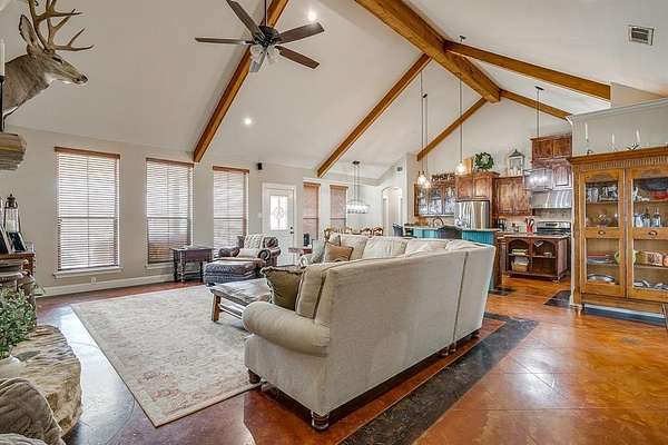 Experience the perfect blend of space, style, and comfort in this stunning 2,533 sq. ft. single-family home set on 5 picturesque acres within the highly desirable Northwest ISD. Featuring an open floor plan and thoughtful design throughout, this family-friendly ranch offers modern country living at its best. Step inside to find 3 spacious bedrooms, 2.5 baths, and a dedicated office with a closet--easily adaptable as a fourth bedroom. The inviting living area flows seamlessly into a beautifully appointed kitchen and dining space, ideal for gathering and entertaining.