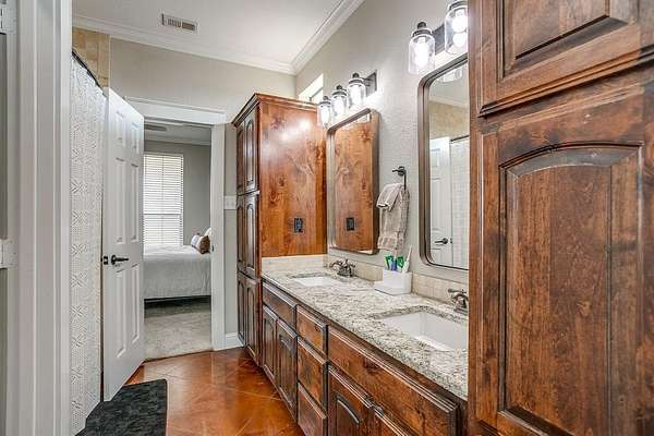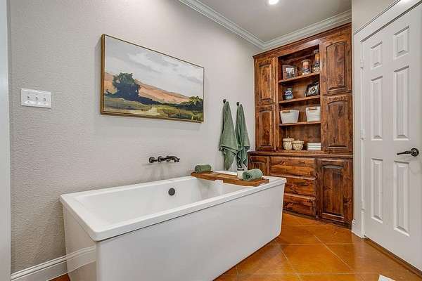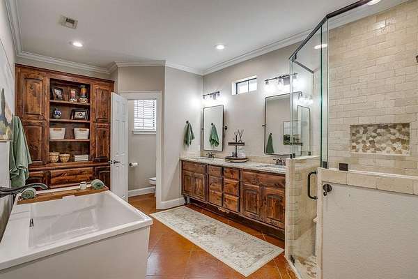 Step outside to your personal retreat--an incredible 22'x45' pool with a large tanning ledge and a 3.5'-9' depth for both relaxation and fun. The expansive 1,795 sq. ft. covered patio with a gas-burning fire pit creates the perfect backdrop for Texas evenings under the stars.