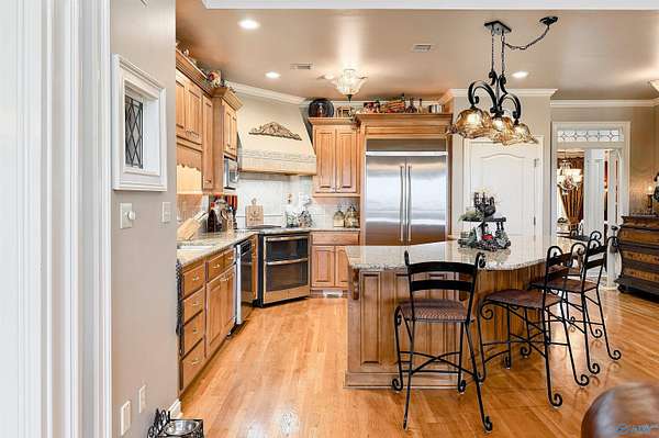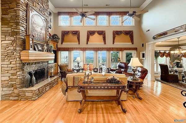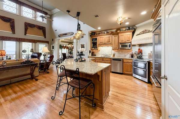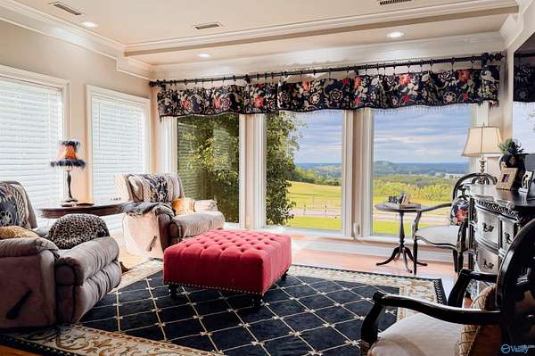NOW SHOWING!! Welcome to an extraordinary luxury estate in North Alabama, nestled on over 10 pristine acres. With amazing panoramic views of North Alabama this exquisite property features a stunning and spacious main house, with the master bedroom on the main level and three additional bedrooms upstairs. Full central vacuum and surround sound add a nice touch. The finished lower level serves as a full living area, featuring a secondary full kitchen. The property also features a two-bay shop with a floor lift and a barn with a full apartment, both equipped with heating and cooling! Experience the perfect blend of comfort, & luxury! Please see the document section for other amenities.