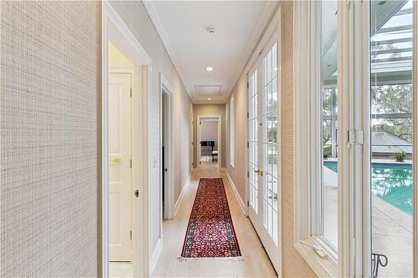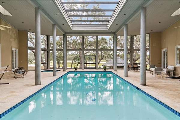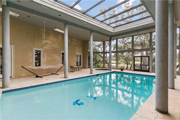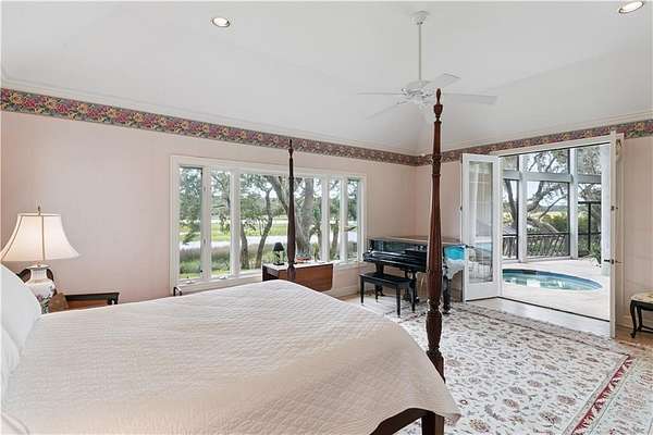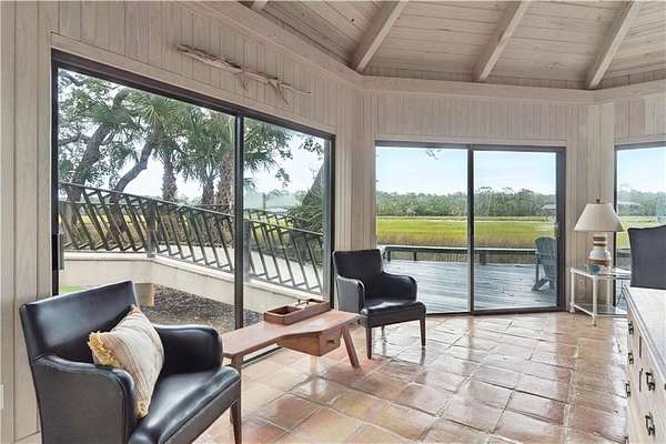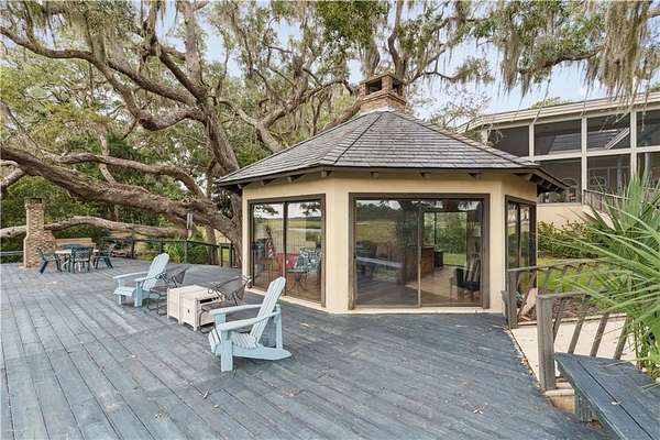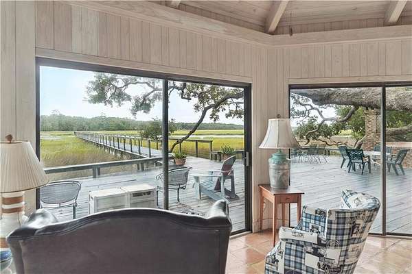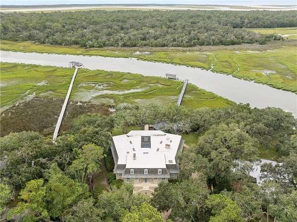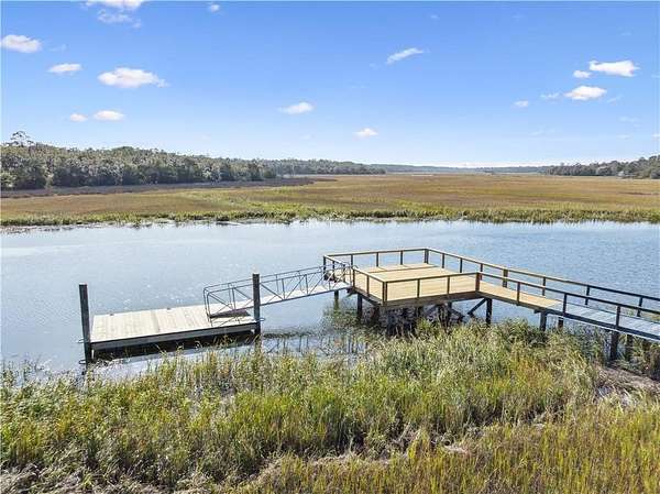 French Provincial deep water estate on 3.11 acres total, including 1.17 acres of high, upland ground, offering 4 bedrooms, 4.5 baths and approximately 4,110 sq ft of elegant living. Poised on Jones Creek with deep water access, the residence frames sweeping marsh and river vistas from nearly every room and includes both a floating dock and a fixed dock. Inside, timeless architectural details, skylights, light filled rooms flow to expansive entertaining and an on deck enclosed gazebo with kitchenette, powder room and wood burning fireplace. The grounds are designed for effortless outdoor living with a built in smoker, a private 8 ft perimeter wall and a large enclosed pool with jacuzzi. Practical features include a three car garage configured to accommodate up to five vehicles plus storage, decorative slate roofing with a protected flat GAF rubber roof, well water for drinking and irrigation, septic tank and a whole home water softener system. A rare combination of privacy, functionality and waterfront lifestyle--an true coastal retreat.