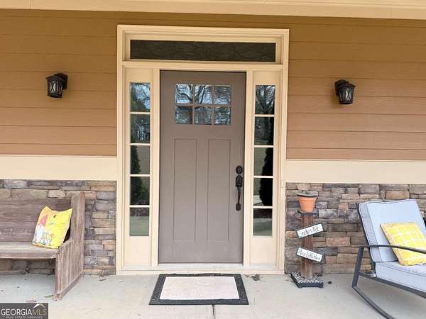 Welcome to your own private retreat in a highly convenient Covington neighborhood! Nestled on 2.36 acres along a quiet, private street, this beautifully maintained 3-bedroom, 2.5-bath home offers the perfect blend of comfort, space, and seclusion. Wrapped in durable Hardiplank siding, this home boasts inviting curb appeal and thoughtful design throughout. Step inside to discover awesome laminate flooring that flows seamlessly through the spacious great room and kitchen, enhancing the open-concept layout. The family room is the heart of the home, featuring a stunning large stone fireplace and clear sightlines into the kitchen and dining area-perfect for both everyday living and entertaining. The wonderfully appointed country kitchen is sure to impress, complete with a butler's pantry, center island, breakfast bar seating for four, and stainless steel appliances. Just off the kitchen, you'll find a walk-in pantry/laundry room that includes a convenient small office space-ideal for working from home or managing daily tasks. The oversized owner's suite is a true retreat, showcasing a tray ceiling and a luxurious en suite bath with split double vanities, his and hers closets, a large soaking tub, glass-enclosed shower, and abundant natural light. Secondary bedrooms are generously sized and share a well-appointed full hall bath. A large unfinished bonus room provides endless possibilities-already floored, it's perfect for storage or ready to be customized to fit your needs. Step out back to enjoy year-round relaxation in the spacious sunroom featuring its own fireplace, or unwind on the covered patio overlooking your private acreage. Additional highlights include a detached 12'x16' second garage, offering excellent storage or extra parking space. This property combines peaceful living with everyday convenience-don't miss your opportunity to call it home!