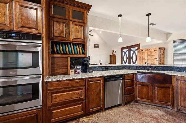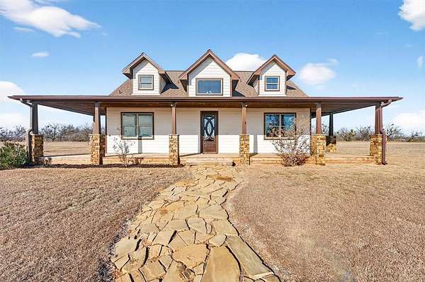 Experience refined Texas country living in this custom 3-bedroom, 2.5-bath home situated on just over 10 fully fenced acres, located outside the city limits of Graham, Texas. Thoughtfully designed with quality craftsmanship and rustic elegance, this property offers space, privacy, and functionality in a peaceful rural setting.