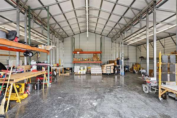 Outdoor amenities are extensive and well-suited for a variety of uses, featuring a 2-car garage with epoxy flooring, a 48x40 workshop equipped with electric, water, sink, cabinetry, shelving, and sub-panel, along with a 40x40 pole barn offering electric and water--ideal for equipment, recreational vehicles, or livestock needs. The property is fully fenced and cross-fenced with multiple gated entrances, including an electric front gate with dusk-to-dawn lighting. Two 50-amp RV hookups are available, one under roof with water and electric, offering flexibility for recreational vehicles, equipment, or high-capacity electric vehicle charging.