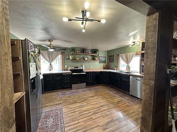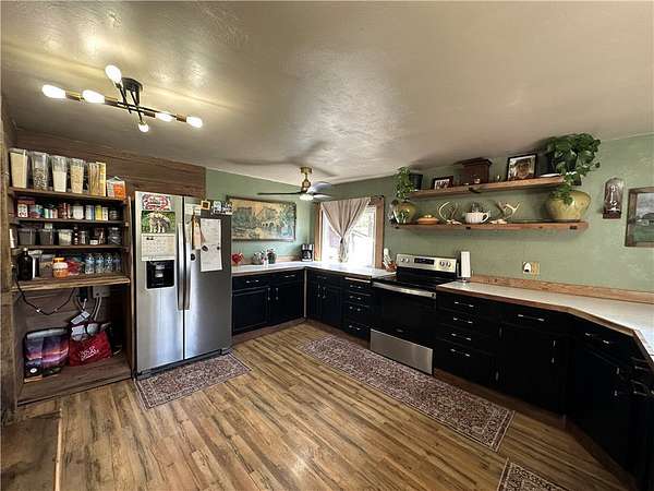 - Bedroom On Main Level, Ceiling Fans, Country Kitchen, Eat In Kitchen, Home Office, Main Level Primary, Natural Woodwork, Pantry, Primary Suite, Separate Formal Living Room, Window Treatments