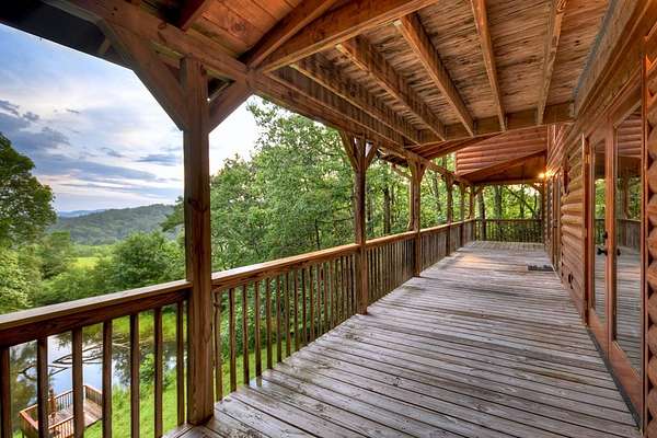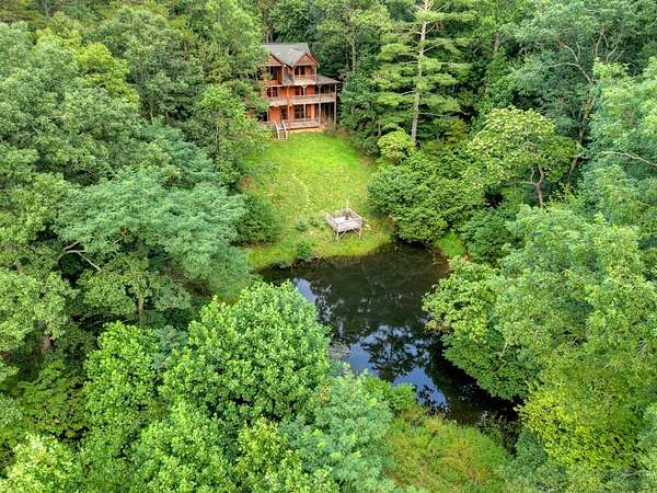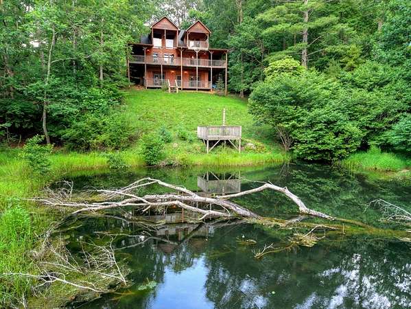 THIS ONE HAS IT ALL! Rustic luxury meets outdoor adventure in this exceptional 3BR/3BA mountain retreat featuring long-range mountain views, a roaring creek, and private pond access for fishing—just minutes from the Toccoa River and the famous Swinging Bridge, and only 20 minutes to downtown Blue Ridge. Designed for both relaxation and entertaining, the spacious open-concept layout showcases three fireplaces, beautiful wood finishes, and seamless indoor/outdoor living spaces highlighted by a wraparound porch perfect for enjoying the sights and sounds of the mountains year-round. The fully remodeled terrace level by Keith Sumner adds modern mountain elegance and additional flexible living space ideal for guests or recreation—making this property especially attractive as a high-performing short-term rental or private retreat. With all paved access, privacy, water features, multiple outdoor gathering areas, and proximity to some of North Georgia's best trout fishing, hiking, and river activities, this property checks every box for luxury mountain living, vacation rental investment potential, or the ultimate fisherman's getaway. Rare combination of views, water features, accessibility, and location near the Toccoa River corridor makes this a standout opportunity in today's Blue Ridge market.